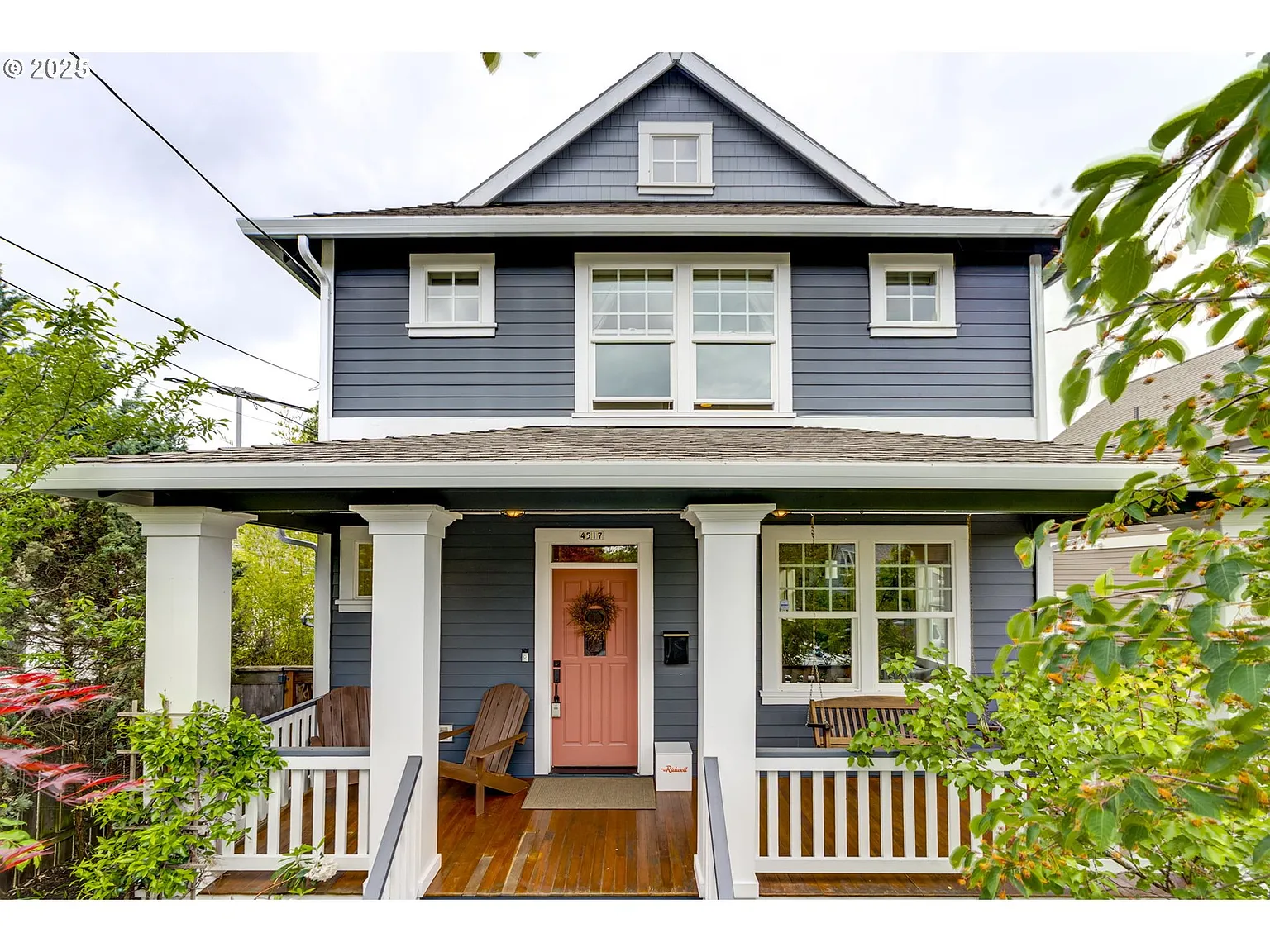 Modern living meets classic style in this thoughtfully built 2006 home. Designed to blend seamlessly into a neighborhood of vintage houses, this newer build offers the best of both worlds: modern comforts wrapped in timeless design. A spacious front porch with wood decking and stately columns invites morning coffee and friendly chats with neighbors. Inside, rich wood floors, craftsman-style trim, a formal entryway, and a handsome fireplace with built-ins bring warmth and character. The open-concept layout offers a circular flow through the living room, dining area, and spacious kitchen with a central island, ideal for gathering and staying connected. Generous windows on all sides fill the home with natural light. A versatile sunroom and mudroom space on the main floor works perfectly as a drop zone, reading nook, or home office. Upstairs, the primary suite features a beautifully tiled bath with heated floors and walk-in closet. Two additional bedrooms overlook the backyard and share a second full bath. Convenient upstairs laundry makes daily life easier! Out back, mature landscaping surrounds a deck and patio that extend your living space and invite alfresco dining and entertaining. A long driveway offers ample off-street parking, and the garage is ideal for storage, hobbies, or parking. With a Bike Score of 100 and Walk Score of 83, you're perfectly positioned to enjoy Portland’s community lifestyle. Just blocks from the vibrant Alberta Arts District, you'll have easy access to great restaurants, coffee shops, boutiques, and neighborhood events. Move in, unpack, and go play! [Home Energy Score = 7. HES Report at https://rpt.greenbuildingregistry.com/hes/OR10182627]