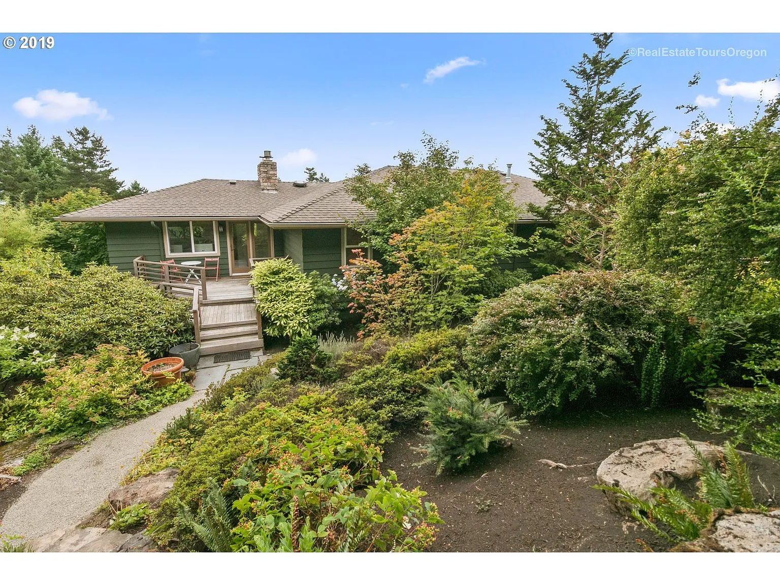 Nestled in the heart of Hillsdale this MID MOD home embraces panoramic views, lush privacy & tranquility on over a .25 acres. Minutes to dwntwn Portland! Over 150K in custom upgrades inside & out! Formal living/dining, harwds, flr to ceiling wndws, 2 FPLs & mster suite on main. Kitch w/slab, built in eatng nk, ample cbnts, ss. FULL bsemnt w/bons, full bth & additnal rms! Bckyrd perfect for summer fun.
