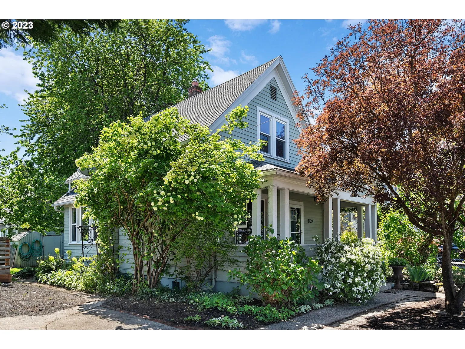 Timeless Mt. Scott-Arleta Victorian! Sweet opportunity to own a lovely Victorian with timeless appeal near Mt. Scott Park. Set on a large fenced lot, the welcoming front porch features unique details and ample space for summer relaxation. Natural light floods the living room thanks to a large picture window, while elegant hardwood floors enhance the character and history of this 1907 gem. Host dinner parties in the sophisticated formal dining room with beautiful built-ins. Kitchen feels fresh and gently updated. Cozy retreat upstairs with 2 bedrooms featuring dormer ceilings. Beautiful yard offers a perfect mix of sun and shade with thoughtful, mature landscaping, plus, includes a nice-sized private driveway. Close to Mt. Scott Community Center and Indoor Pool, Portland Mercado, coffee/bars/dining on Foster, with quick access to I-205. Zoned CE - Commercial Employment, MU-C - Mixed Use - Civic Corridor - buyer to do their own due diligence. [Home Energy Score = 2. HES Report at https://rpt.greenbuildingregistry.com/hes/OR10214970]