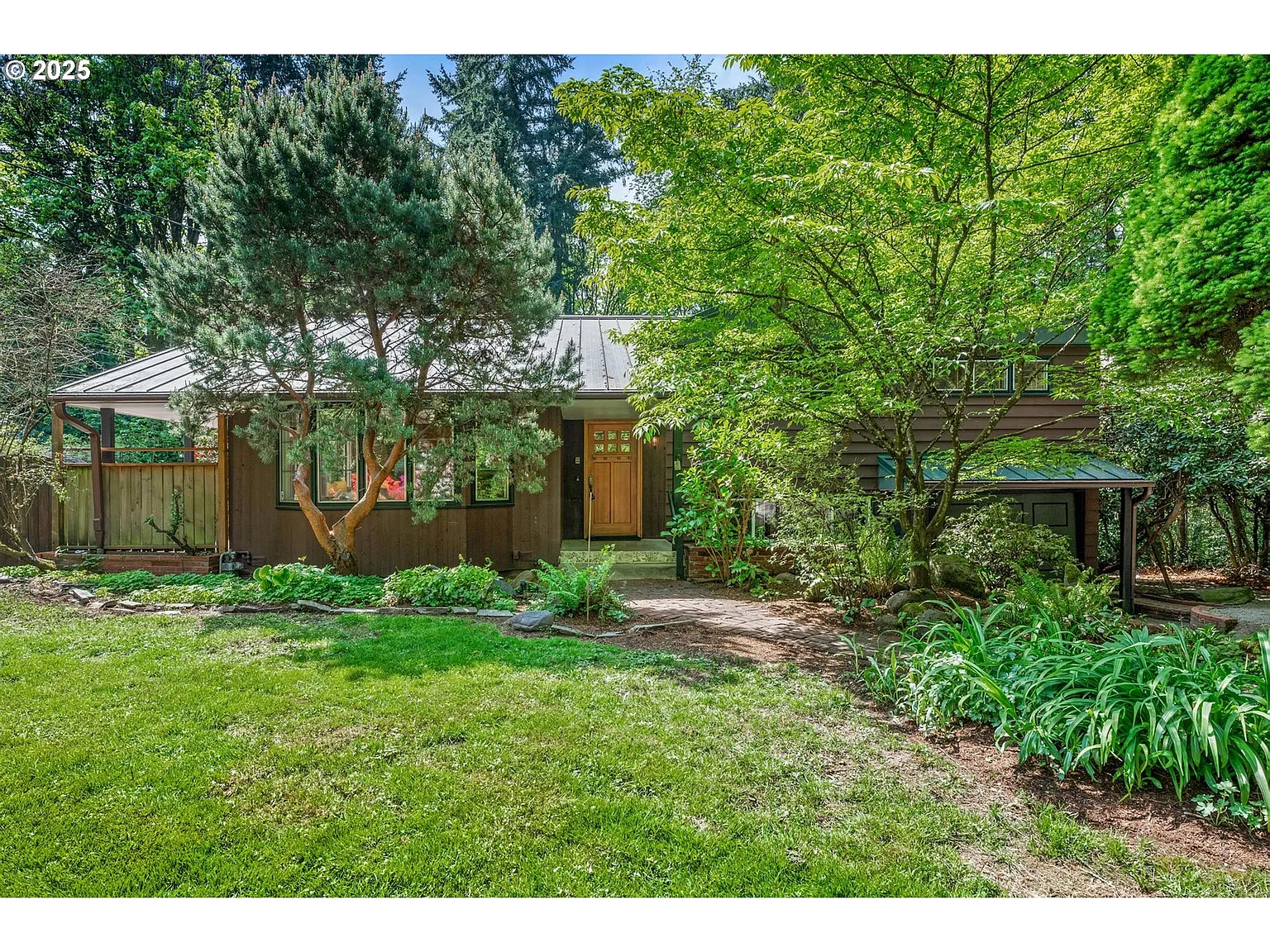 Discover this stunning mid-century home, perfectly situated in a private, wooded setting above Terwilliger. Just a short walk from OHSU and minutes to Downtown Portland and Hillsdale’s shopping, dining, and entertainment options. The 2820 SF interior includes an attached ADU apartment with its own separate entrance. Permitted in the recent past for long and short term rentals. Inside the home you'll find a warm and extensively updated interior featuring hardwood floors and charming craftsman finishes. The formal living room boasts a wood-burning fireplace and picture window views of the patio and lush landscape. The spacious chefs kitchen, with a gas cooktop island, opens directly to the dining room, which has a brick fireplace and patio access. The deluxe ensuite primary bedroom has forest views and includes a walk-in closet, steam shower and freestanding soaker tub. Two more full sized bedrooms and hall bath on the upper level. The lower level offers a large light-filled space ideal for the family room, along with a generous sized workshop and storage. All on a .30 acre forested lot surrounded by nature and Environmental Conservation Zoning. [Home Energy Score = 2. HES Report at https://rpt.greenbuildingregistry.com/hes/OR10202103]