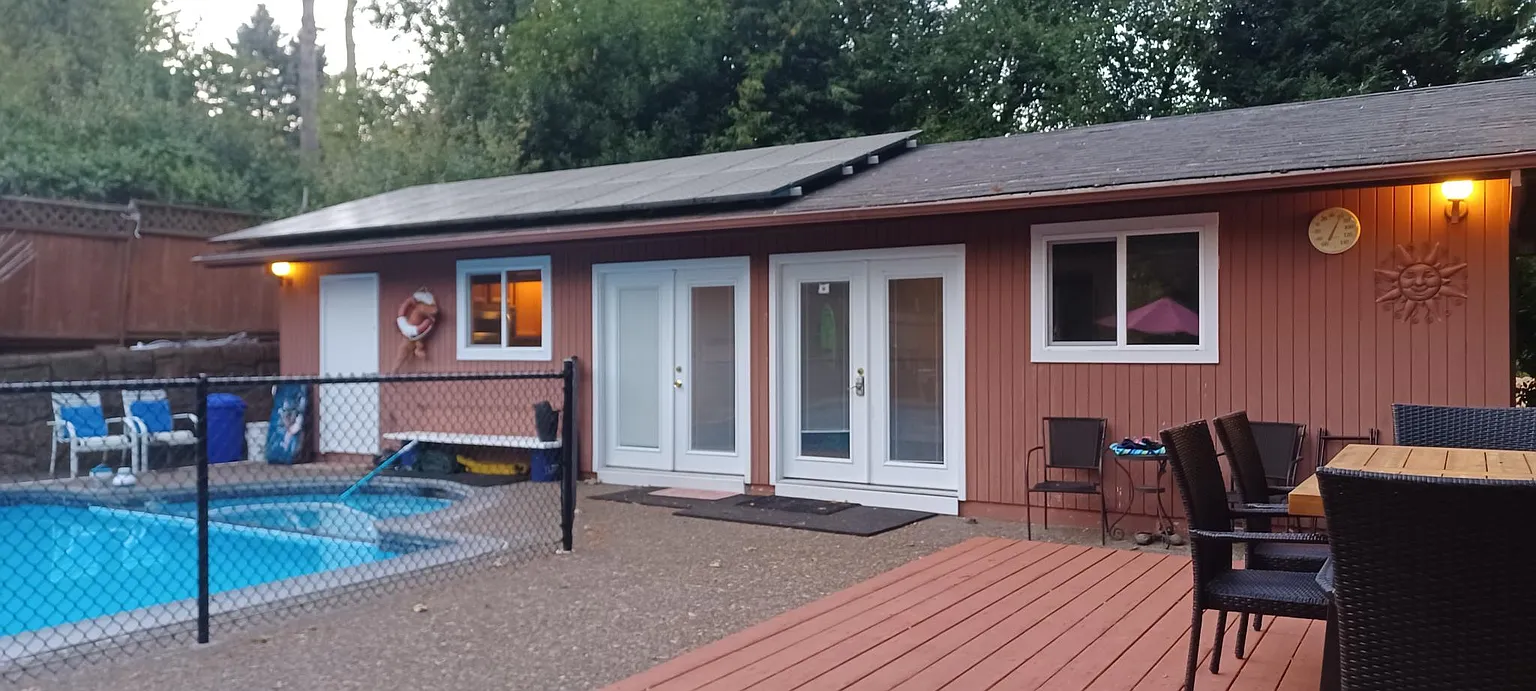 Very private detached studio with full kitchen and large bathroom nestled in the forest of SW Arnold Creek. This neighborhood has a country-like feel full of trees, streams, large lots, chicken coops and is safest in all of Portland. Close to PCC Sylvania, Lewis & Clark, Tryon Creek SP, Barbur Blvd transit station, Lake Oswego, and only 10 minutes from downtown Portland (with convenient access to I5). Lots of yard to roam with shared deck, garden and other areas available for you and your pet to enjoy. You need to be tolerant of children, domestic animals and wildlife. No smoking in cottage. Unfurnished with all utilities included. Wifi available. Private and safe off-street parking and some storage. Swimming pool is available during Summer. New floor, new step-in closet and all new windows in main room. Cottage is solar-powered! Video security on property. Initial lease for 6-12 months (flexible and negotiable) then month-to-month with 1 month notice to terminate by either party. Must be pet-friendly to live here. Your pet is also allowed, but will increase rent by $50 and requires an additional $300 pet deposit. For $1450 per month we provide 550 sq ft detached cottage, very private with off-street parking, wifi access, plus utilities paid, including electric (heat), water/ sewer, and trash/recycling. (estimated savings $350 mo) Unfurnished, but may be furnished at a higher rent amount TBD. Full kitchen, including NEW electric stove and refrigerator. Available immediately. Move in date is negotiable. Background check is required.