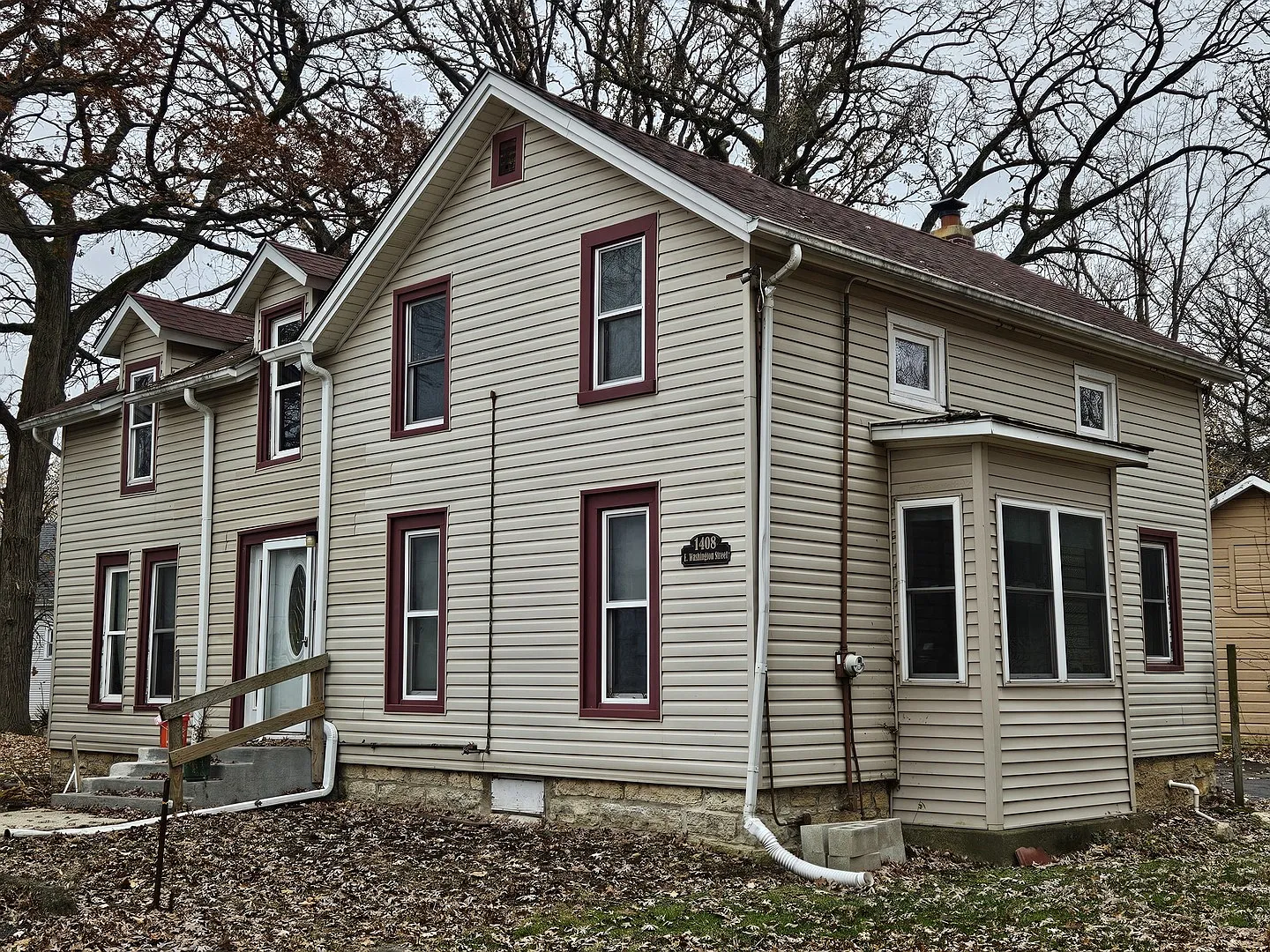Spacious 2-story home surrounded by a mature oak grove. The house offers over 2,100 sq ft with original hardwood floors and craftsman built-ins throughout. Major components are approximately 10 years old, including updated electric, hot water tank, roof, windows, and furnace. Main floor includes generously sized rooms with kitchen, 1/2 bath, living room, dining room, sunroom, and office or potential bedroom. Second floor features three bedrooms and a large full bath with skylight and stand-up shower. Large primary bedroom with walk-in closet. The property includes two parcels, each a double lot. One parcel fronts Washington St. with commercial zoning or future build potential. The residence sits on the second parcel set back for privacy with a long drive off White Ave.