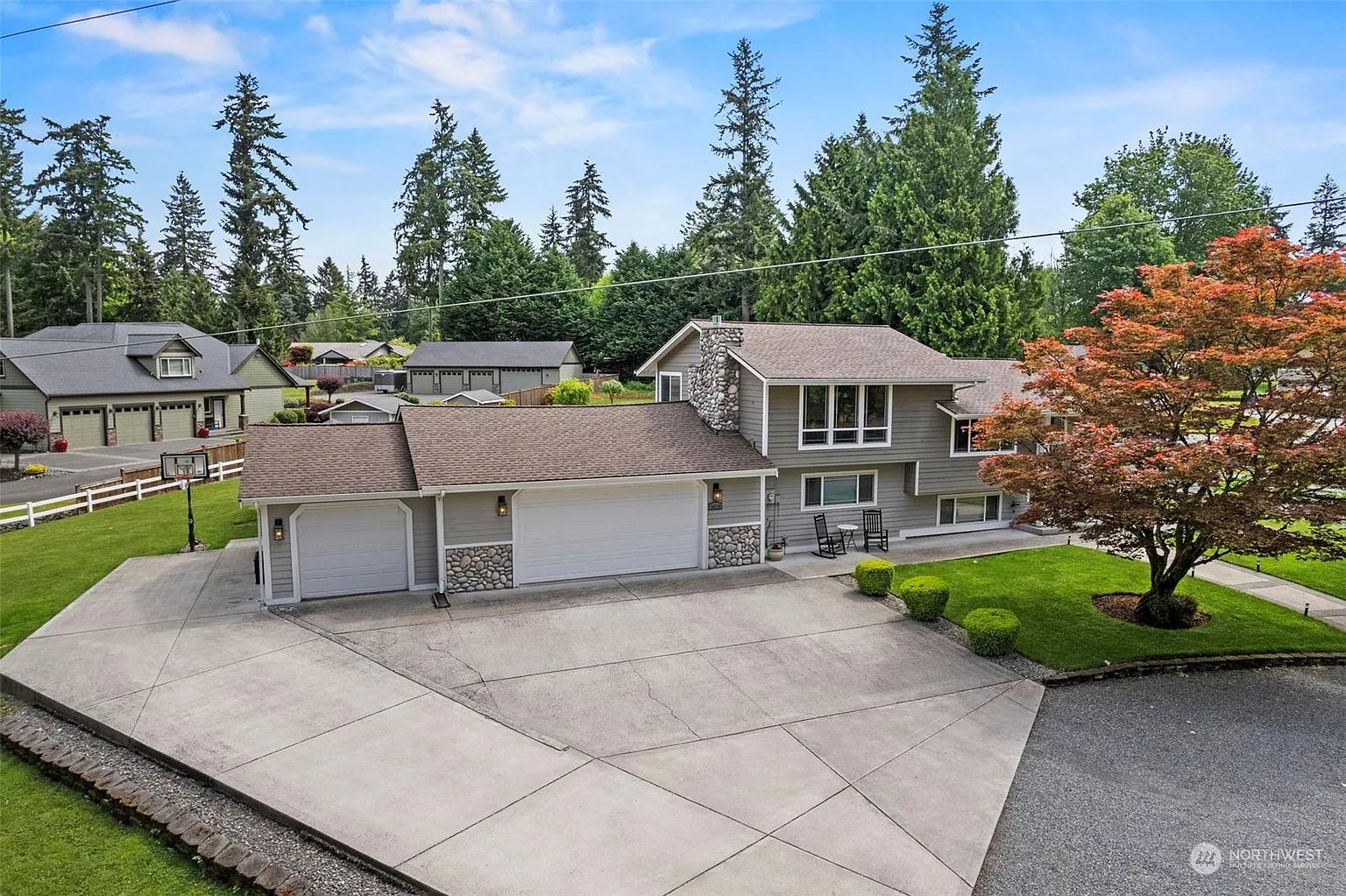 Don't miss out on this remarkable opportunity to own a spacious 2,500 sqft, 4 bedroom, 1 office, 2.75 bathroom multi-level home situated on a generous 0.5 acre lot within a private and gated community of 8 homes. This well maintained property boasts a 1,000 sqft+ 3 car garage, circular driveway, 2 spacious sheds, stunning landscaping, and a large water feature in back. The primary room with en suite and walk-in closet is on the main floor, while the lower level offers 3 additional bedrooms, an office, full bathroom, and a recreational room. Additional features include beautiful custom pegged pine flooring throughout main and upper level, new carpet on lower level, abundant natural light, AC and 2 fireplaces. This one won’t last long!