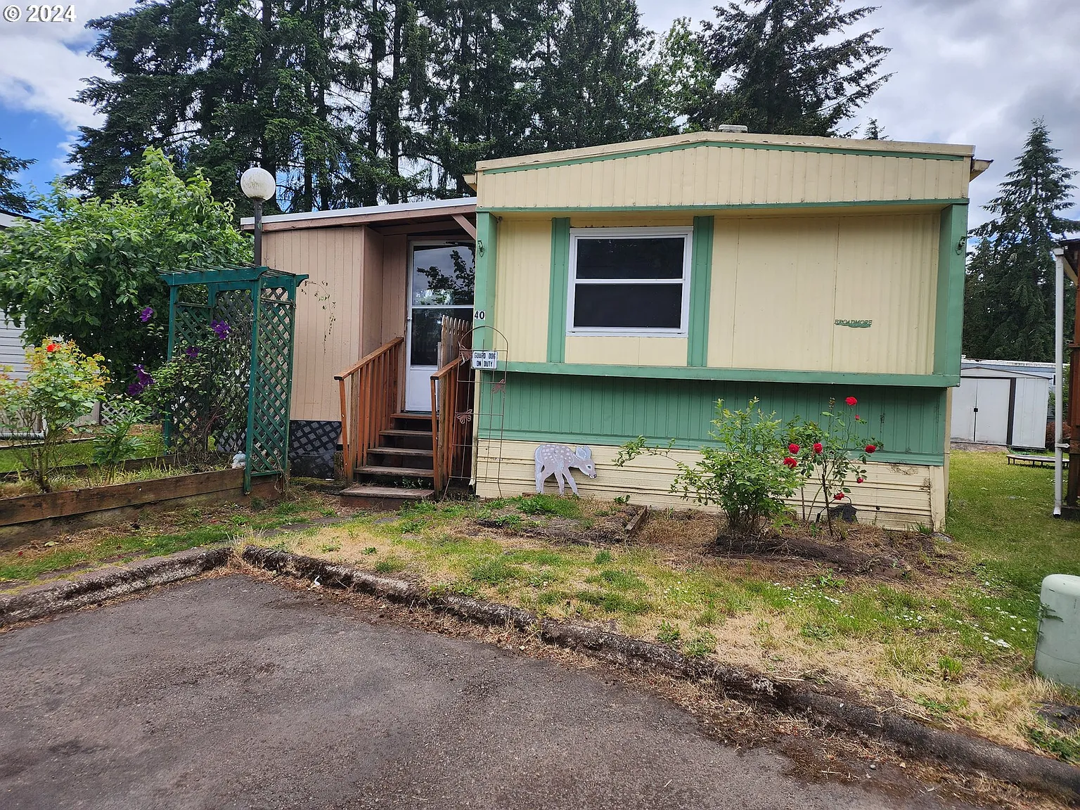 This 3 bed 2 bath home is situated in a all age park. Most recent updates consist of: butcher block countertop in the kitchen, granite tops in the bathrooms, luxury tile surrounds in the bathrooms, roofs about 7 years old, double pane vinyl windows and water heater about 3 years. The yard is spacious and is fully fenced. 3 tool sheds included. Covered patio is great for the rainy weather. Space rent to be $750 a month, garbage included. Centrally located to parks, walking trails, schools, hospitals, and quick freeway access. Come check it out today!