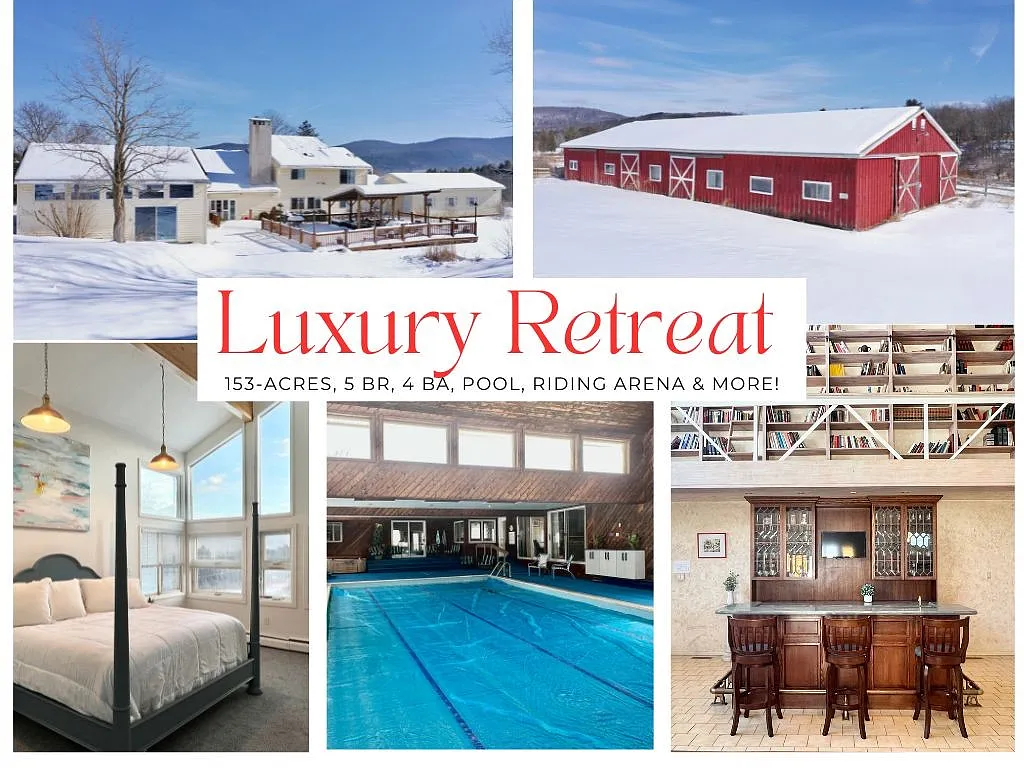Set on 153 majestic acres in the northwest Catskills in the Upper Susquehanna Valley, this one-of-a-kind luxury home with established short-term rental history is located just 5 minutes from Cooperstown All Star Village and the city of Oneonta and just 3.5 hours to NYC. Extraordinary property for an elite lifestyle, recreation & income potential. INVESTMENT OPPORTUNITY- Zoned Residential/Agricultural, the property has an established short-term rental history and is being offered turnkey. The seller plans to continue hosting guests this summer, with projected seasonal income available upon request. Existing bookings may transfer to the new owner. MAIN HOUSE- 5800 sf, 5 BEDROOMS, 4 FULL BATHS Anchored by a two-story great room w/ a stone-framed gas fireplace, wet bar and balcony library, an eat-in kitchen & coffee bar, a baronial-scale dining room and a dedicated office/entertainment space. 1st floor has 4 BRS & 3 BA thoughtfully arranged to include two separate guest suites w/ private patios & a separate wing w/ 2BR, PLUS a 3-lane heated indoor pool and hot tub addition–creating a true year-round resort experience. 2nd level: Sundrenched PRIMARY RETREAT, & a well-appointed private workspace. Basement: Wine cellar, family room w/ pool table & laundry room. Three-car attached garage. Newer gas boiler. Window AC’s and mini-spits. EQUESTRIAN BARN AND APARTMENT: Solidly built, professionally designed with electric and water includes riding area, stalls, tack room, and hay storage. Built in 2-story 1 BR, 1 BA apartment can be used as caretaker’s quarters or another source of revenue. INDOOR RIDING BARN- Currently used as a soccer arena, demonstrating further income versatility. THE LAND “Four-Season Wonderland” offers fenced pastures, 2 ponds, extensive trails, frontage on Otego Creek, meadows, wooded acreage, additional barn & purported quarry. An expansive resort-level deck provides the perfect setting for entertaining & enjoying sweeping views of the rolling Catskills. A compelling opportunity as a luxury private retreat, an equestrian estate, lucrative AirBnB or hybrid lifestyle as an income-producing haven. Priced to sell. Call for your private tour.