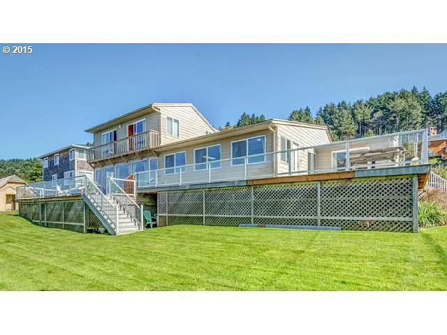 Breathtaking ocean views & accommodations for large groups! Enjoy beach access just a half block away and easy access to Chinook Winds Casino, grocery stores, restaurants, golf & more. Use as a vacation rental, primary or 2nd residence, endless possibilities! Huge living/dining room w/wood burning rock fireplace & tons of natural light. Basement w/game room, full bath. Take in the view from the multi-level deck w/hot tub. Two tax lots.