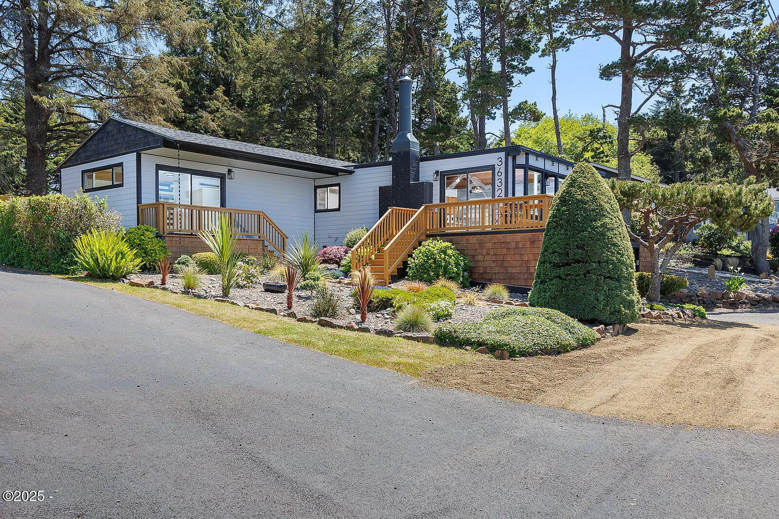 Welcome to your dream home! This is a 3 bedroom, 2.5 bath gem with peaks of ocean views. Enjoy the modern charm of new siding and a brand- new roof installed 2023. Each bedroom features its own deck, offering a seamless blend of indoor-outdoor living. The open floor plans is airy and inviting, perfect for modern lifestyles. Nestled in town, close to schools, cozy coffee shops, and the papular Christmas shop, with beach access within walking distance. This home is located on Cul De Sac. Don't let this home be the one that got away.
