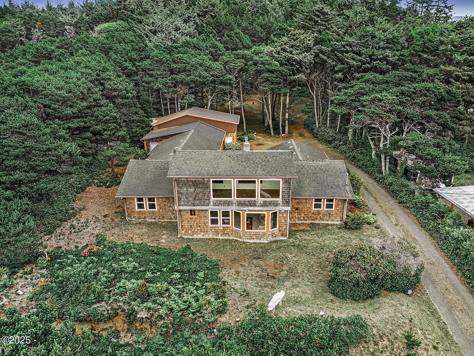 Fabulous OCEAN VIEWS from this spacious contemporary home! Close proximity to one of the finest beaches Oregon has to offer. Enjoy main level living with lots of flexible space, perfect for artists, work from home and/or multi-generational families. Dramatic views from the large loft/bedroom which could be used as an office, an art studio or an entertainment area. This home features a two car garage as well as a separate RV garage. Plenty of parking space! Almost an acre of beautiful wooded grounds offering privacy and a feeling of serenity. Live your dream in this rare friend on the Oregon Coast! Shown by APPOINTMENT ONLY