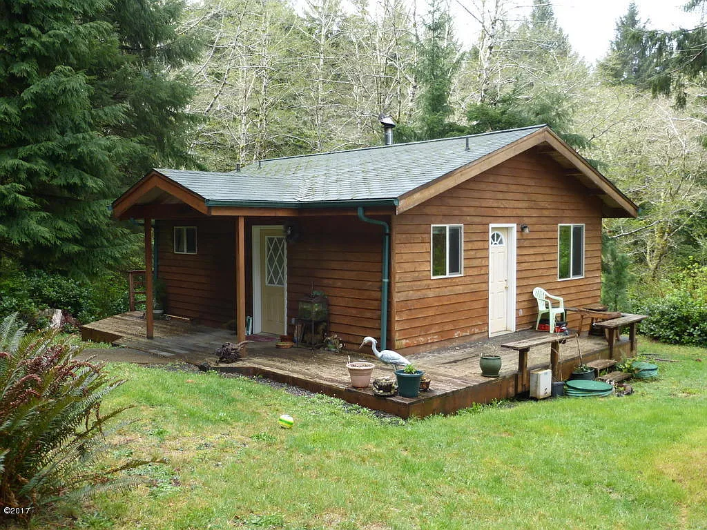 Take a look at this cute cabin near the beach. Built in 2001, in a quiet setting surrounded by trees, features include vaulted ceiling with skylights, woodstove, covered porch & wrap around deck. Nice yard with garden shed or greenhouse. Short distance to the shops & restaurants of Yachats & miles of sandy & rocky shores. Hiking & beach combing nearby, whichever you prefer, or just curl up with a book by the woodstove. Great for weekends, minimalist living, or a modest rental.