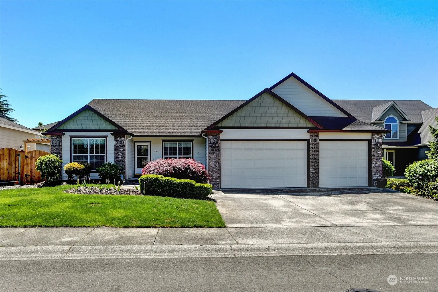 Move-In Ready! Formal dining rm. GR FR, gas fireplace, space for accessories/TV, 2 skylights. Cook Island/eat bar stainless kitchen, New appliances, granite cntrs,cabinetry w/pull-outs,glass panes&wine rack,WI pantry. Kitchen dining slider to cvrd patio. French doors to primary en-ste, ceiling fan,WI closet w/organizer,dual sink tiled vanity,jet tub,shwr,New toilet. 2 addtl bds,1 w/dbl closets. Den/office. Laundry,washer,dryer,built-ins,sink,murphy ironing board. Bath w/single sink granite vanity,combo soak tub&shwr,New toilet. Engineered hardwd,tile,slate tile,carpet. New light fixtures&water heater. Vltd ceilings&high baseboards. Landscaped,front&back patios,shed,sprinklers. New fence. 3-car x-deep garage,built-ins. New EV charge station.