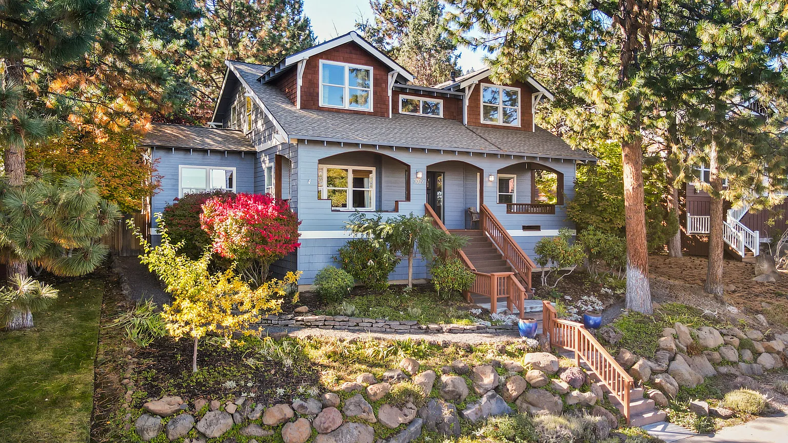 Located in the sought-after community of Awbrey Village on Bend's Westside, this timeless Craftsman home offers stunning recent updates throughout and captures sweeping easterly views of the Ochoco Mountains and Powell Butte. Light-filled great room flows seamlessly into the recently remodeled chef's kitchen featuring sleek quartz countertops, subway tile backsplash, stainless appl, & custom cabinetry & drawer system for efficient storage. Spacious dining area opens to a private deck and fully-fenced backyard, ideal for entertaining al fresco. Generous main level Primary Suite offers serene views, walk-in closet, and a completely remodeled spa-inspired bath with dual vanity, soaking tub, and tiled shower. Upstairs: 3 additional bedrooms, remodeled 2nd full bath, and loft flex space. Experience epic sunrises each morning and sparkling city lights at night from the expansive covered front porch. Walk to neighborhood park and just minutes to Westside schools and Bend's favorite amenities.