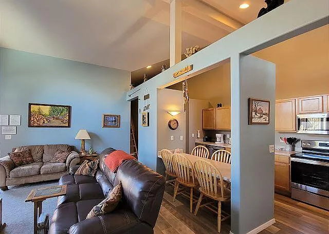 This Updated Powder Village Condo is one of largest of all the units with one of the best views from both of its private decks. Powder Village is easy access to Sunriver Resort, Sunriver Business Park and the Deschutes River and all Central Oregon has to offer This upstairs unit boasts an open floor plan, vaulted ceilings throughout, 2 bedrooms, 2 baths and a loft that is currently being used as a third bedroom. Updates include new stainless-steel appliances, high end carpeting, laminated wood flooring, interior and exterior paint, roof, Trek decking, along with living room furnishings and bedding. There are two decks, enjoyable views of the amenities and tall Ponderosa trees. Powder Village includes water, sewer, garbage, snow removal, pool and hot tub maintenance. Car Charging Station located in the parking lot. Home sold fully furnished with in unit washer and dryer. Vacation rental income history and proections available upon request.