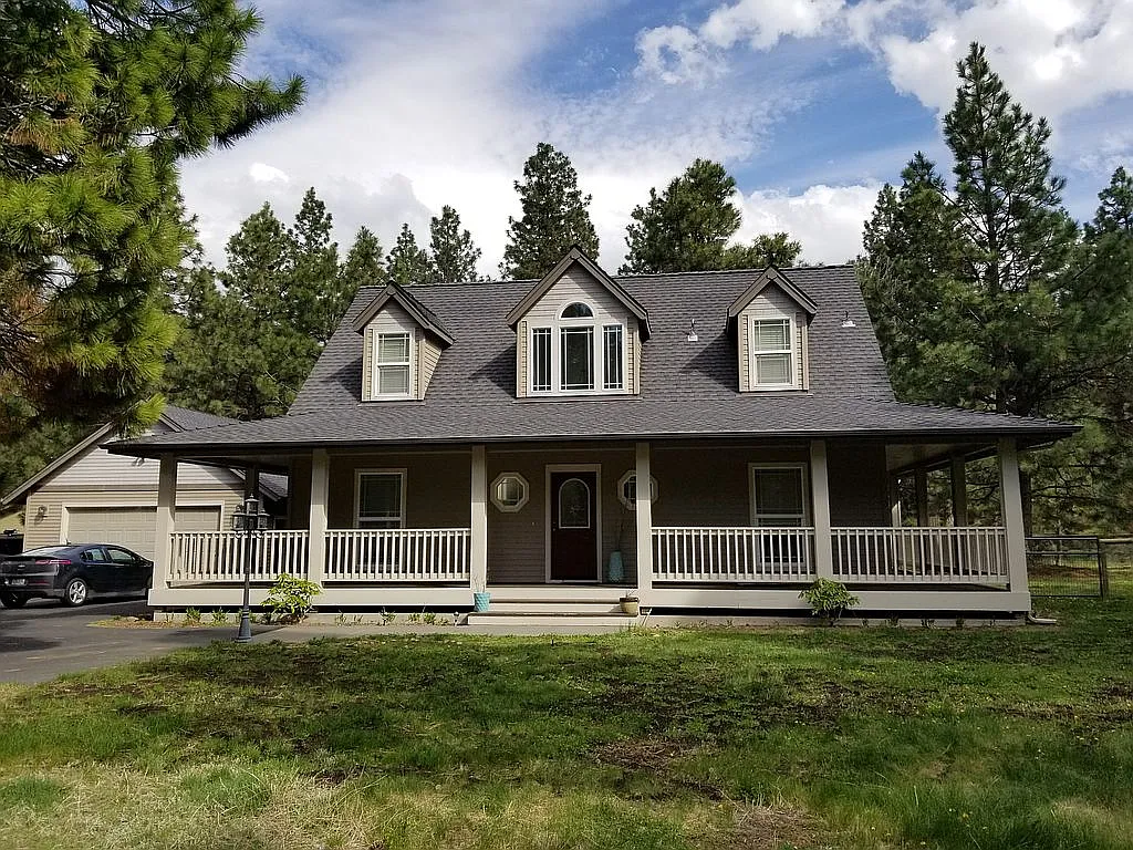 Welcome to this darling French Country home that sits on a .5ac corner lot backing up to common area and National Forest surrounded by towering Ponderosa pines. Enjoy your morning cup of coffee on the large wrap around covered porch, or watch the kids or dogs play in the large fenced back yard. As you enter the home you will find tall vaulted ceilings filled with lots of natural light and a cozy fireplace surrounded by windows and French doors that lead you to the backyard. The kitchen opens to a casual breakfast nook with bay windows. Formal Dining may also be used as an office space with a new sliding barn door for added privacy. Main level Master with a cozy fireplace, French doors that open to the back deck and a soaking tub to unwind and relax in. Upstairs you will find 2/bed & 1/ bath. Detached double car garage that is insulated and heated with new garage opener. Desirable Tollgate Community amenities include paved walking paths, clubhouse, pool, basketball and tennis courts.