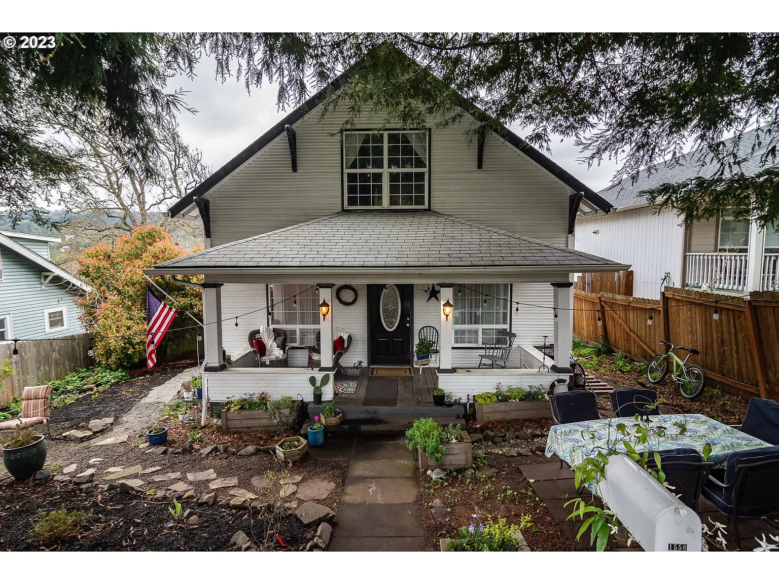 1910 Charmer! This turn-of-the-century home in the heart of downtown roseburg will steal your heart. Enjoy the covered front porch, built-in cabinets, wood floors, & beautiful architecture this three bedroom home provides. With an abundance of natural light. Great open space for living/dining room. Downstairs bedroom easily converts to an office, game room, or family room. Spacious Primary and second bedroom upstairs. Second bedroom features a unique split concept, making it ideal for a shared bedroom or office/guest room. Sip your coffee on the front porch and gaze at the 100+ year old evergreen that provides beauty and shade and is the pride of the neighborhood. Enjoy manicured front yard space as well as a fenced back yard with a boutique chicken coop/workshop. Short stroll to downtown restaurants and shopping, local parks & more.