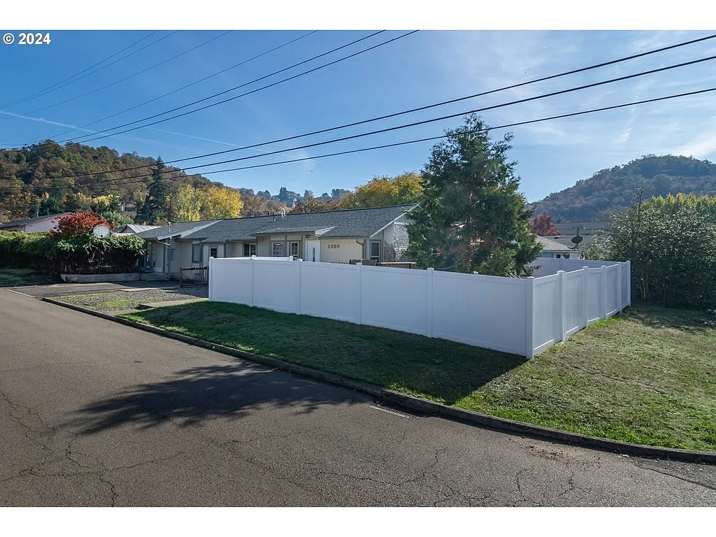 Welcome to this versatile, single-level, four bedroom home in desirable Northeast Roseburg. Designed for multiple living options, it’s perfect for a larger group or a two-family setup. Live on one end and rent out the other. With accessibility features like a roll-in shower and ADA ramp, every detail has been thoughtfully considered. The updated interior boasts fresh paint, remodeled primary suite bathroom, new kitchen countertops and new vinyl flooring and trim.On one side of the home, you'll find an inviting kitchen with a breakfast bar, expansive pantry, and butcher block counters, along with a spacious living/dining room, three bedrooms and a full bathroom. The other half features a laundry/storage room, a formal dining or family room, a primary suite with a custom tiled roll-in shower and walk-in closet, and an expansive vaulted great room that spans the width of the house. This multi-purpose room has endless possibilities as a large private room, stellar entertainment room, craft room, etc., with two exterior entrances for added flexibility.The outdoor space is a true oasis. The vinyl fence ensures privacy and seclusion, while the yard offers fantastic outdoor living areas. Watch pets and people play in the yard from the custom play structure off the front deck, or tend to your garden in the designated area. The private backyard is designed for easy maintenance with concrete and rock surfaces, making it ideal for relaxing, barbecuing, and providing ample space for storage or hobbies. Additional features include a tool shed/workshop for all your storage needs and plenty of parking, including space for RVs up front or on the side. Situated on a large corner lot in an established neighborhood, this home is conveniently close to shopping and amenities.Come see its potential and make it yours!