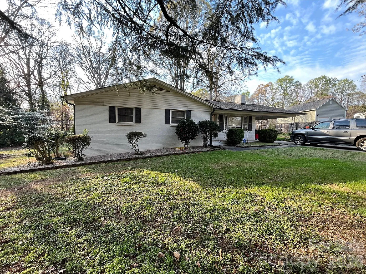 Charming brick ranch situated on a spacious, open .47-acre lot with mature landscaping and wide-open yard areas perfect for outdoor enjoyment. This delightful home retains its timeless appeal, featuring original hardwood floors that have been freshly sanded and stained throughout the entire house, a beautifully updated fireplace, and two fully remodeled full bathrooms. Step inside to a welcoming living room just off the front door, flowing into a generously sized kitchen that opens to a cozy den—ideal for everyday living and entertaining. The kitchen features a custom ventilation system so that all cooking fumes from the stovetop are vented directly outside when the microwave ventilation is turned on. The home offers a private master bedroom with its own remodeled full bath, two additional spacious bedrooms, and a large remodeled full hall bathroom. Fresh interior and exterior paint enhances the crisp, move-in-ready feel. Additional features include a convenient carport and a storage shed in the backyard. The unfinished basement offers approximately 865 sq ft of potential living space that could easily be converted into heated, finished living area. A little gem in the heart of the city, just minutes from uptown, the airport, the Whitewater Center, and shopping. A must-see!