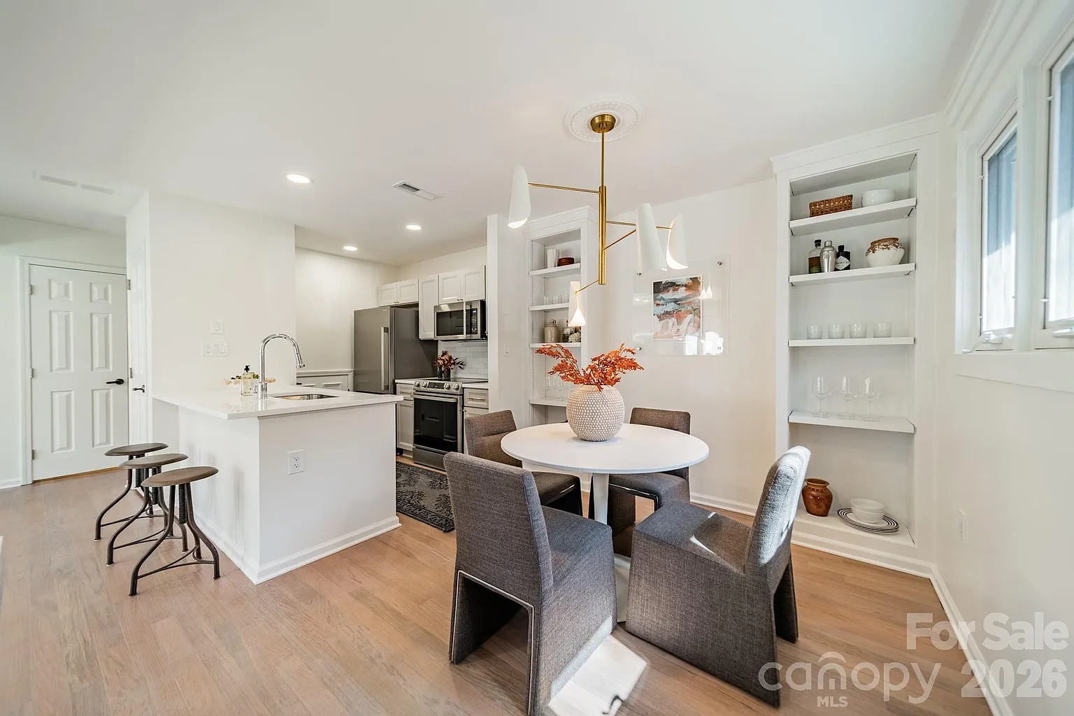 Impeccably renovated Uptown condo with professionally curated selections in the heart of the Queen City! This highly sought after end unit is a rare offering, with it's spacious primary bedroom with vaulted ceiling! Natural light fills the open floor plan, highlighting refinished wood floors, crisp, fresh paint and and thoughtful updates throughout. The kitchen stands out with Quartz countertops, new cabinetry dressed with gold hardware, stainless steel appliances, and a glazed tile backsplash. It overlooks the living area and private brick-walled patio, creating a connected, easy flow for everyday living and entertaining. Built-ins in the dining room provide both style and functionality. The primary bedroom is dreamy, with soaring ceilings and two closets, including a walk-in and a second dedicated closet that finally gives your shoe collection the space it deserves! Flawlessly executed, renovated bathroom with black and white marble floor tile, porcelain shower tile and vanity in the perfect shade of sage and gold sconces give a perfectly subtle nod to art deco design. A spacious secondary bedroom with seating area provides the flexibility of a home office, gym, or comfortable space for guests. Enjoy the courtyard with brick privacy wall and outdoor storage closet. Enjoy summer weekends in the community pool with your new neighbors. A dedicated parking space means no time spent searching for a spot and no paying for Uptown event parking - priceless! Walk to restaurants, shopping, grocery store, green spaces and all of Charlotte’s sports and entertainment! Easy highway access makes getting out of town a breeze! Welcome Home!