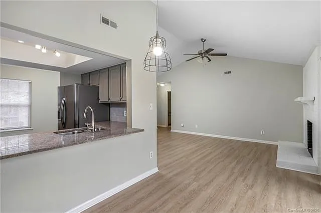 Must See 2 bed/2 full bath condo! Granite counters, grey cabinets, stainless appliances, brushed nickel faucets, light fixtures, and beautiful laminate wood flooring throughout. Living room has vaulted ceilings, and a stunning full height white brick fireplace, complete with white mantle. Kitchen has window / breakfast bar opening into the dining area, perfect for entertaining. Neighborhood features clubhouse w/ weight area, pool, and very convenient for public transportation. Complete update to kitchen, bathrooms, flooring, and fixtures completed in the past couple years - sold as-is. *Multiple offers received - If interested, offer submission requested by 9pm on Monday 1/27*