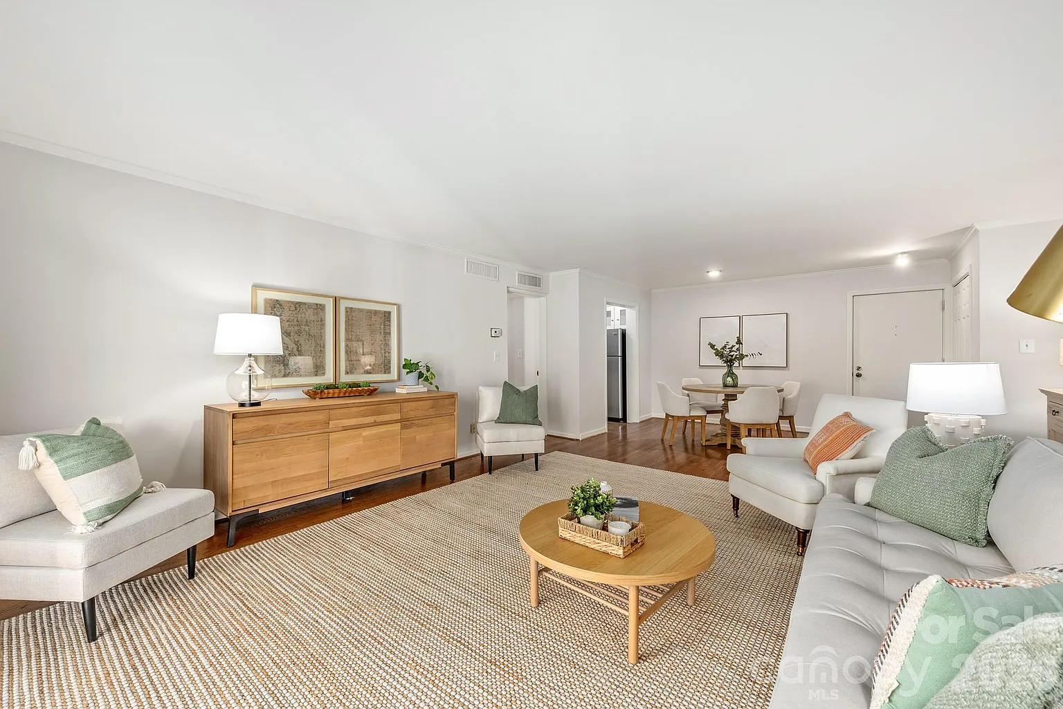 Move in ready in the heart of Myers Park! So convenient to all of central Charlotte, you’ll live among the beautiful oak trees only a stone’s throw from the Tiny Teeter, Squirrel Park & the iconic Duke Mansion + so many delicious restaurants & boutiques. This vintage condo has 2 full baths, solid wood flooring, nice big closets, glass door cabinets in kitchen, upgraded baths & freshly painted thru out. You’ll get your steps in as bldg wraps around the Myers Park Library & Opus condos. Unit is near laundry, stairwell & small storage unit. HOA assigns parking. Note that Pets & short term rentals are not allowed. Charlotte House = easy living as HOA dues cover fast internet, cable TV, water/sewer, heat/A/C, trash/recycling, pool & common area maintenance/insurance/landscaping. All you need to do is turn on the electricity.