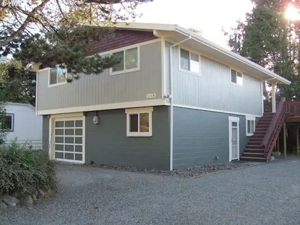 Updated/remodeled, 3 bedrooms 2 bath coastal getaway, Kitchen/dining/LR open-vaulted main level, Laminate flooring, Large covered deck-off back overlooks trees, enjoy morning coffee, evening beverages, BBQs, privacy, relaxation and listening to the ocean, 4 blocks from 7 miles sandy beach of the Pacific Ocean, short distance to downtown Rockaway with shops/ restaurants. Sell furnished, vinyl windows, pellet stove. level lot not in flood plain, 1 car garage, off-street parking/space for 30 ft RV