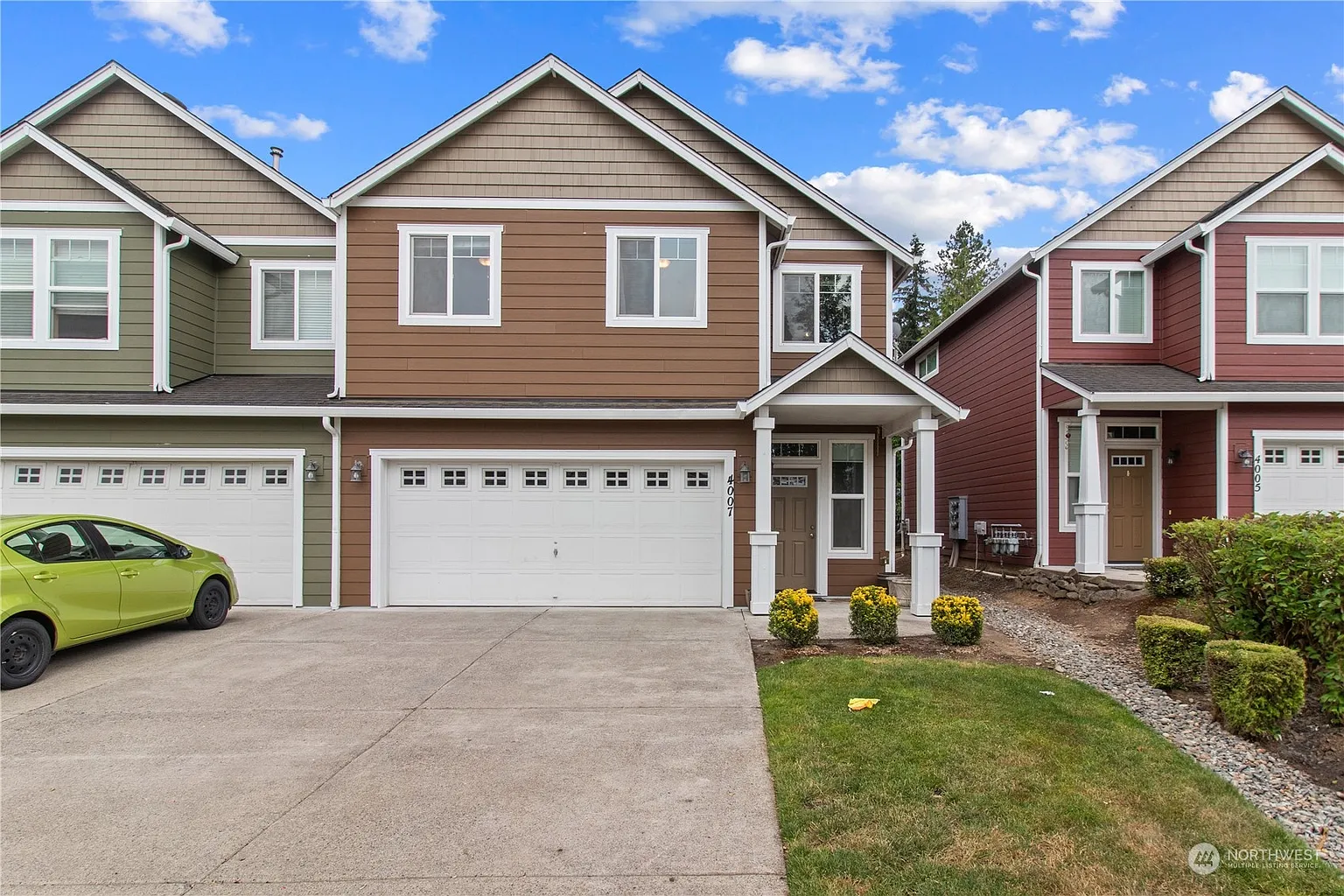 Charming Home in a Private Gated Community with exclusive park, outdoor pool, gym, and community center. Open modern kitchen with island, glass door to back patio. Living room with gas fireplace. Guest bath on main. Three bedrooms, loft, dedicated laundry room, and two full bathrooms upstairs. Owners suite with vaulted ceilings, double sinks, and walk-in closet. Spacious patio in back. HOA maintains front and back yards. Two car attached garage with plenty of parking and additional guest parking in the community. This is a well-planned out home and community. Come check it out.