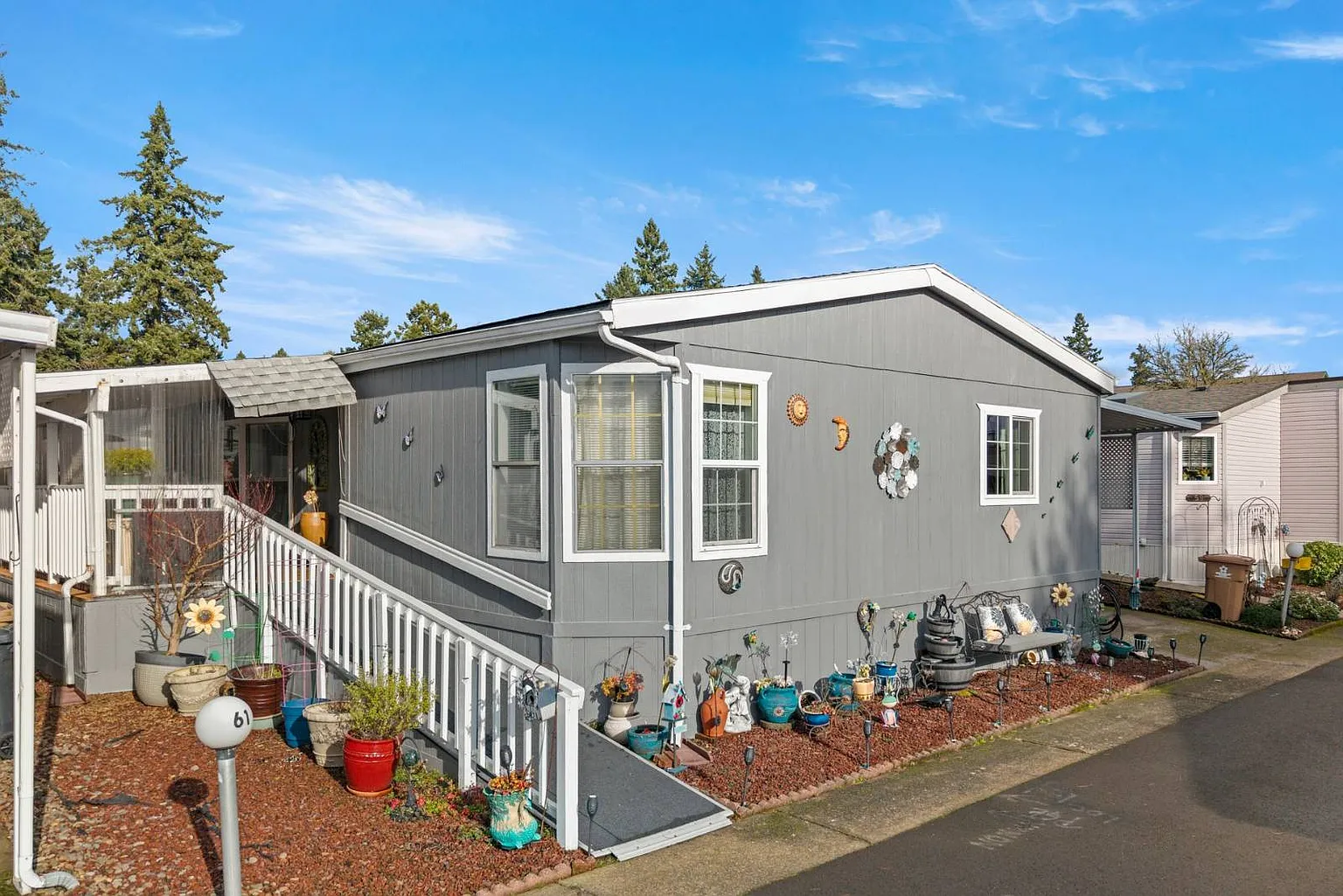 Welcome home to comfort, convenience, and easy living in this well-kept 55+ park tucked away just off Pacific Highway in desirable Tualatin. Enjoy a quiet, peaceful setting while staying close to shopping, restaurants, medical services, and everyday essentials. You're only 20 minutes from downtown Portland and just 1.5 hours from Lincoln City-perfect for spontaneous trips to the stunning Oregon Coast! This 1,620 sq ft home offers a highly desirable split floorplan with 3 bedrooms and 2 bathrooms, vaulted ceilings and numerous windows providing light, privacy and flexibility. Two separate living areas plus a dedicated dining space create plenty of room to relax and entertain. The updated, open kitchen is the heart of the home and comes fully equipped with all-electric appliances, including refrigerator, range, dishwasher, and garbage disposal. Storage abounds! In addition to drawers, cupboards and counter space, pantry cupboards are also conveniently located in the kitchen! The laundry area is adjacent to the kitchen and is outfitted with a utility sink, storage, and washer, and dryer. The spacious primary bedroom features a walk-in closet and the ensuite bath features a double walk-in shower. This home provides two ample guest bedrooms with large closets and the guest bath provides a tub/shower. The large, private, covered all-season front deck highlights space for another living room! The entrance features a ramp for easy access to the front door. Right next to the deck is a spacious patio space-what a bonus for outdoor living! The covered carport accommodates 2 vehicles and provides protection from the rain while taking your treasures in the back door! The massive 10' x 16' shed is at the back of the carport! The New Heat Pump provides Heat and Central Air and features an updated Nest thermostat! The shingle roof is approximately 8 years old! New flooring throughout including tile and easy-care luxury laminate flooring, This home is move-in ready and waiting for YOU!! A great opportunity for the right Buyers!! The Sellers will consider carrying a contract with a sizeable down payment. Terms TBD. Space rent is $979 per month. Hurry to see this AMAZING home!