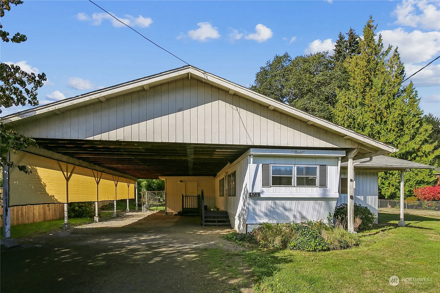 This charming, updated 2-bedroom, 1-bathroom manufactured home offers 806 sq ft of living space. Built in 1965, it features an open living and dining area, a laundry room, and a large carport. The property also includes an engineered roof over the structure, providing ample storage, parking or workspace. Utilize the area in the back where the concrete pad is to build a home or other structure, shop etc. This property is also gated for privacy and security. Situated on a spacious lot in a great neighborhood, it’s close proximity to Robert Gray Elementary, Pacific Way Trail, and several parks in West Longview. This home is perfect for those looking to live in a cozy space or for someone interested in building their dream home on the lot.