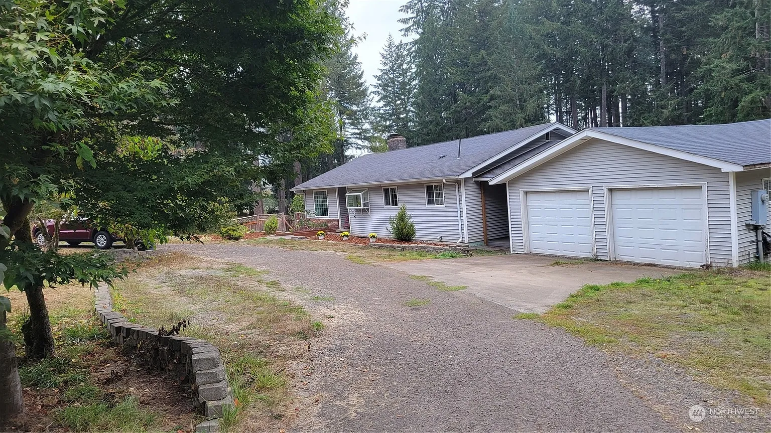 Beautiful gently sloping 1.95 acres with 3 bedroom, 2 full bath single story home! Kitchen has oak cabinets, granite counters and built in oven as well as free standing stove with oven. Fenced garden area and greenhouse, fruit trees, graveled rv parking, private well and brand new septic. Covered breezeway connecting house to 2 car garage. Forced air heating with heatpump and a fireplace for those cold winter nights! Partially covered wrap around deck. Exterior walls are 6" with insulation for soundproofing house. Seller will give a $2,000 carpet allowance! Peak-a-boo view of Silver Lake until neighbor's trees are logged. Come make this your dream home today!