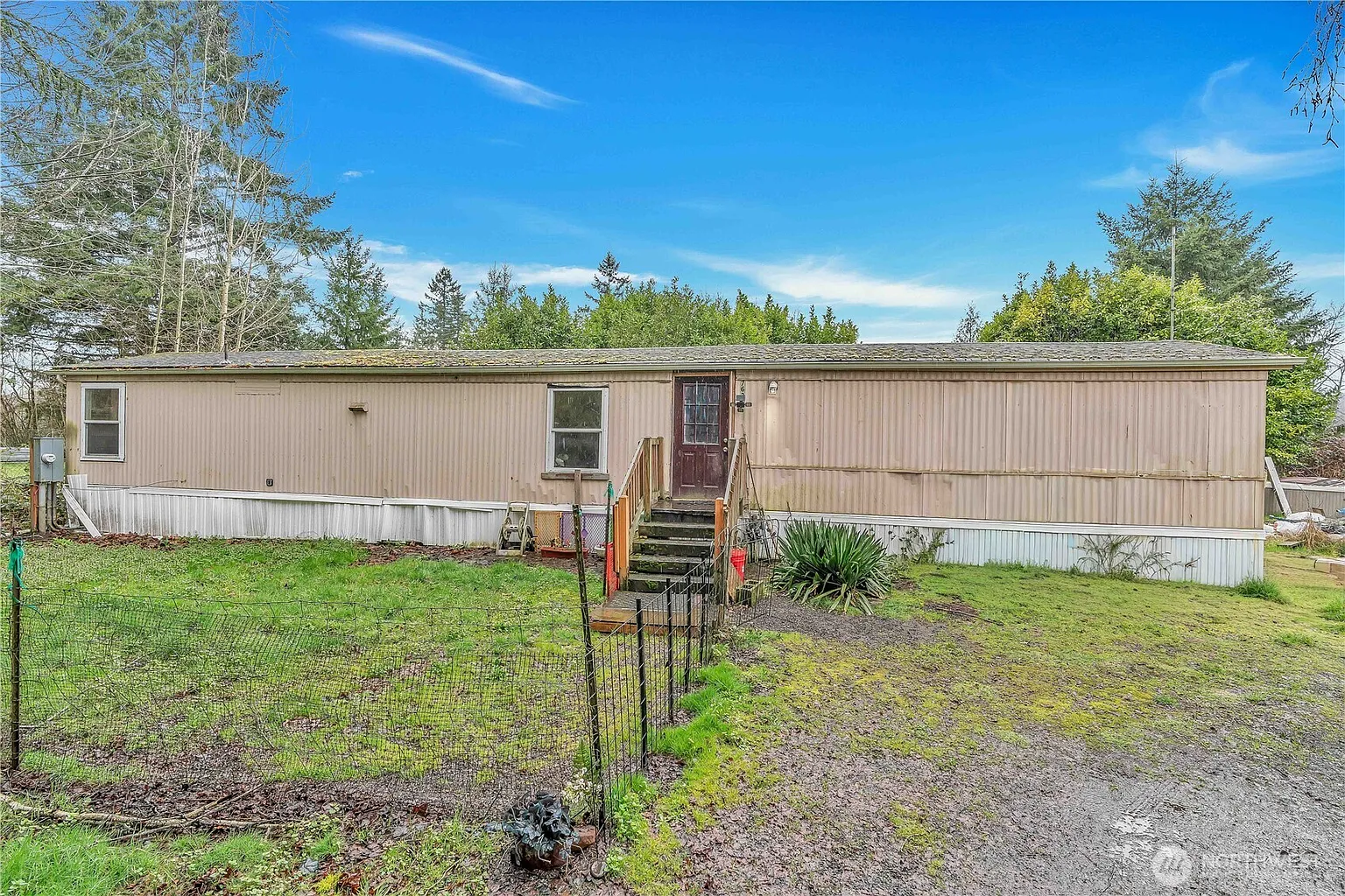Escape to the country with this charming 3-bedroom, 2-bath manufactured home on owned land! Nestled on a 27,007 sq ft lot, this property offers a peaceful retreat with mature trees and a spacious, level yard perfect for outdoor living. Inside, the kitchen shines with hickory and pine cabinetry, a Bausch stainless steel dishwasher, and a new sink and faucet. Enjoy the comfort of double-paned white vinyl windows throughout. The backyard features a well-insulated building that could be converted into a tiny home and a large pump house with abundant storage. The property is equipped with a well producing 8 GPM and a new septic system installed in 2019, along with new downspouts. Conveniently located close to town and local fishing spots, this home is a rare blend of country tranquility and practical living.