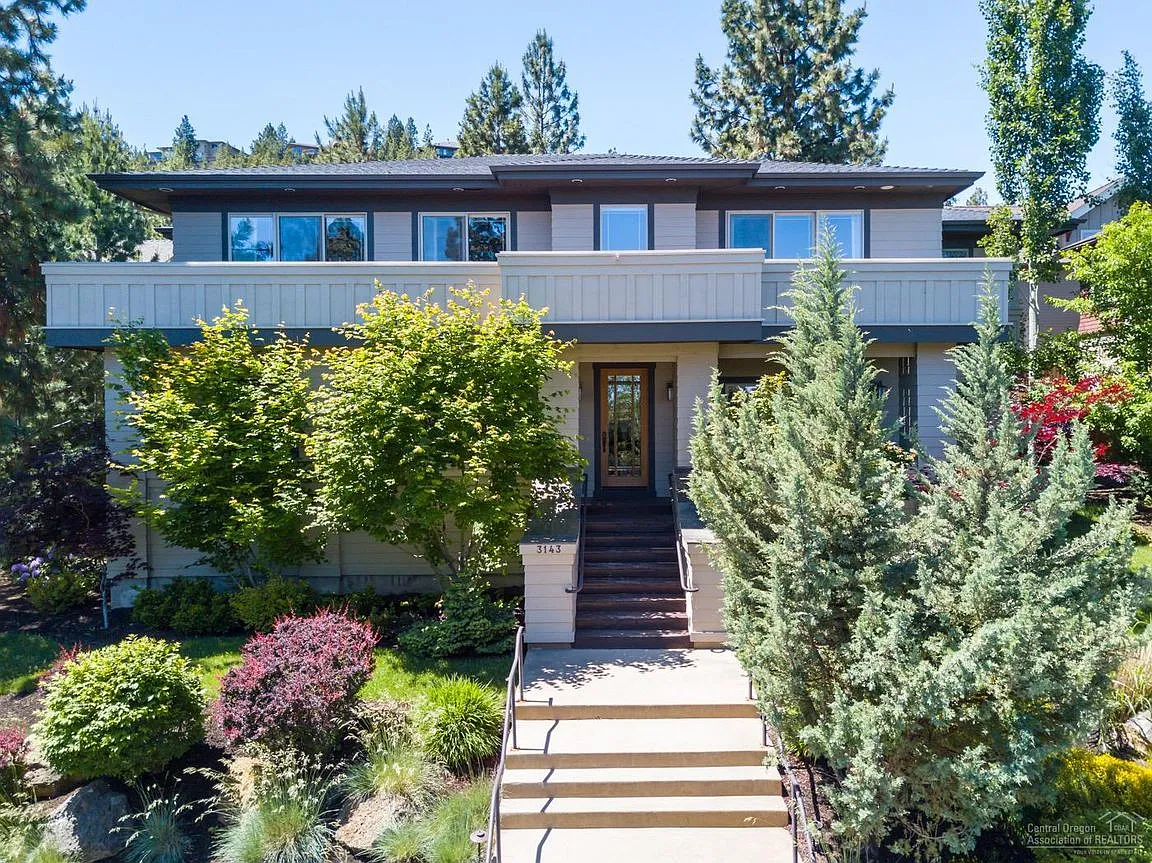 Luxurious Awbrey Village Prairie Style home with impressive Easterly city views from 2 expansive decks. 4 bedrooms, 3 full baths + office. Easy entrance to main level living from 3 car garage off alley access. Grand main level master w/ jetted tub, dual sinks, walk-in tiled shower, huge closet & slider to deck. Gourmet kitchen features granite slab counters, SS appliances & wine fridge. Both living & family rooms have gas fireplaces while bonus/media room is prewired for stereo. Must See!
