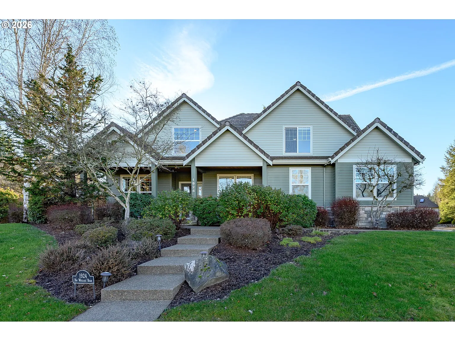 Gorgeous McMinnville traditional home in exceptional neighborhood! This custom built 3 car garage home is ready to welcome you home. A grand entrance with high ceilings is flanked by a home office and formal dining room, leading to an open concept main level living area. The spacious kitchen features solid wood cabinetry, updated stainless steel appliances including a 5 burner gas cooktop, solid surface granite countertops and a breakfast nook overlooking the lush backyard. The gas fireplace gives the main living area a super cozy feel, where you can enjoy the vaulted ceilings and French Doors leading out to the outdoor patio, perfect for entertaining all year round. The primary suite is on the main level and the ensuite bathroom is luxuriously sized, with a walk-in tile shower, double vanity sinks, a separate water closet and a large walk-in closet. A door leads out to private yard space, where a concrete pad and electrical are all set for you to drop in a hot tub and enjoy these cool nights looking at the stars. Upstairs features 2 generously sized bedrooms, a bonus room which could be a non-conforming bedroom, and a full bath. There is abundant walk in attic storage. Cottonwood trail and quiet streets make for a lovely walkable neighborhood, right on the edge of town but close in to McMinnville's historic Third Street and all its restaurants, tasting rooms and boutiques. This is a rare gem, we'd love to have you tour it today!