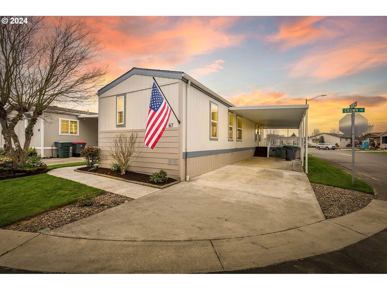 Step into a wonderfully updated home in the premier Old Stone Village. This lovely home has been updated top to bottom and is ready for a new owner. Located on a convenient corner lot with plenty of parking, a well-manicured landscape gives way to a freshly painted single wide home. A large covered deck leads into a living and dining room with new luxury vinyl plank. An open concept main living area with high ceilings, features a kitchen that offers ample countertop space, cabinetry, and all appliances included with the sale. Two bedrooms and two full bathrooms bring comfort and accessibility with updated fixtures in every room. This home is equipped with AC and new blinds with a transferable warranty, ensuring that it stays cool during warmer days. The owner spared no expense, installing a newer roof, siding, and tool shed for extra gadgets. But that is not all! This park has a variety of fantastic amenities, including a pool, meeting room, clubhouse, basketball court, and much more. The surrounding areas have much to offer as well. This home is just minutes from the Evergreen Aviation and Space Museum, several parks and walking trails, and historic downtown McMinnville. This home and its location have it all. Come and see it for yourself today!