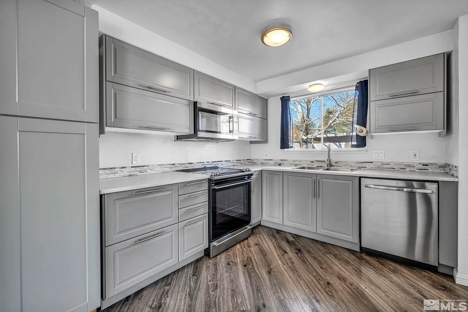 Welcome to this beautifully upgraded modern townhouse, perfectly situated within a well-maintained community. The interior has been entirely updated, with the first floor featuring sleek, neutral laminate flooring, while upstairs is fitted with soft, plush carpeting. The kitchen has been stylishly enhanced with new cabinetry, countertops, a chic backsplash, and all-new stainless steel appliances, making it ideal for both everyday living and entertaining guests., The bathrooms have been tastefully updated, featuring a convenient half bath on the main level and a fully upgraded bathroom upstairs. You'll find modern cabinets, elegant mirrors, added shelving, and a beautifully refinished bath surround. Outside, the private backyard offers an ideal space for outdoor dining and relaxation. It leads directly to a parking area with a carport and additional spaces, along with a handy storage unit for extra belongings. Additionally, you'll love being just steps away from nearby walking trails and within close proximity to restaurants, shopping, and retail, making everyday errands and dining out a breeze. Surrounded by lush landscaping and mature trees, the home offers a serene and scenic atmosphere while keeping you close to all the conveniences of city life. This townhouse provides a peaceful and welcoming environment while also serving as a wise investment in a sought-after Carson City neighborhood. Don’t miss your chance to make this inviting home yours!