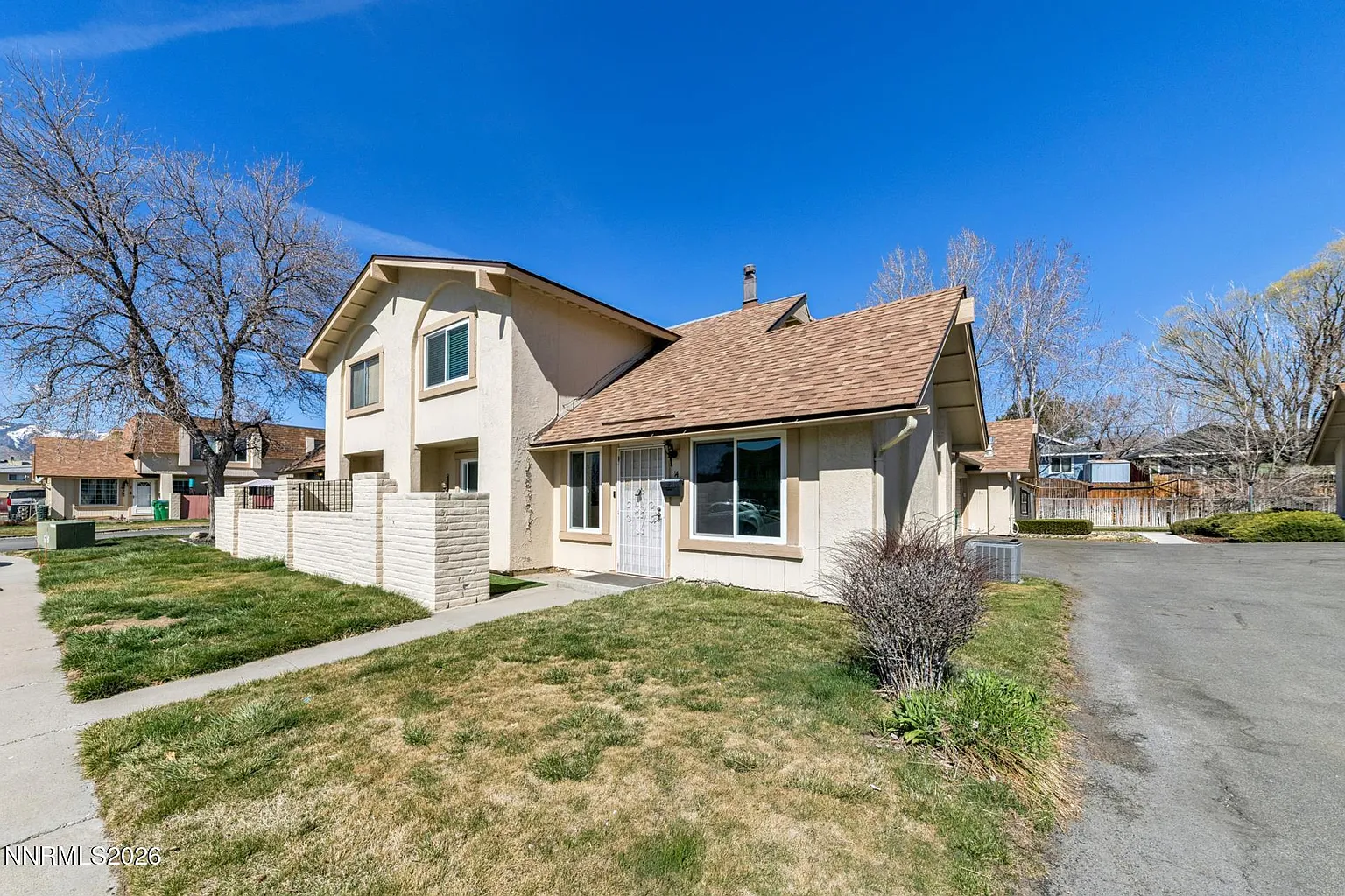 Desirable end unit townhome in the heart of Carson City with lots of greenbelt surrounding it. The HOA community has huge grassy common areas, a pool, and also includes water, sewer, trash, and RV storage. The unit itself has brand new double pane, vinyl windows with an upstairs Sierra view! Interior blinds on sliding glass door, accessing a good sized, sunny, South facing patio. New LVP flooring, carpet and paint throughout. Biometric fingerprint door locks on all bedroom door handles. Newer dishwasher, smart appliance washer and dryer conveniently located in unit. Two car attached garage with additional parking out front.