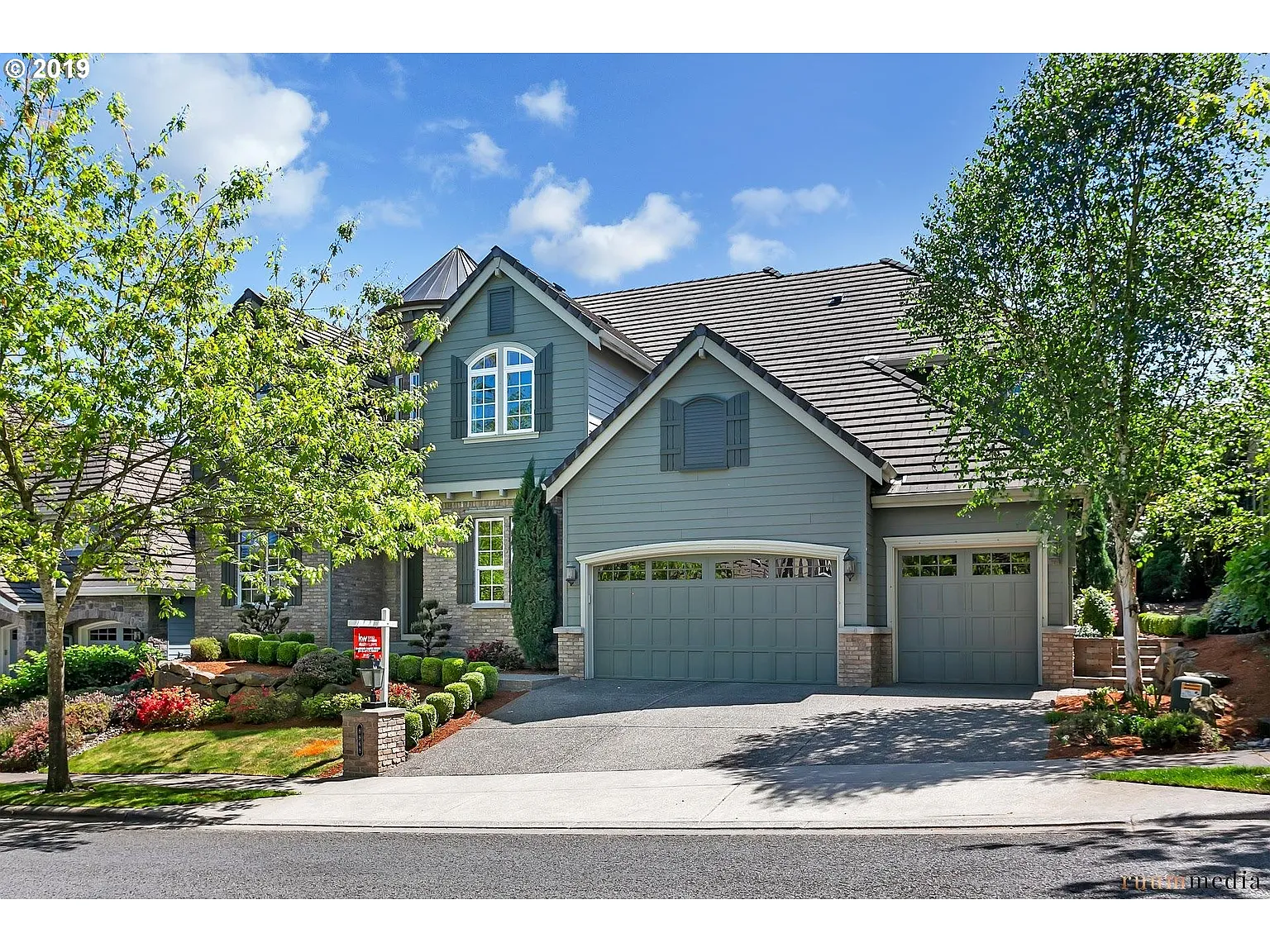 Dream floor plan! Secondary beds all have full en-suite baths w/fresh paint. Master is a true retreat with a library,double-sided fireplace & deck. Master bath w/towel warmer,large walk-in closets with built-ins and beautiful garden tub.Lots of room to work & entertain/play with 2 offices, den & bonus room,sport court,fire pit,covered patio & rope rack for thule/yakima car top unit in garage.Extensive storage & Views of Mt Hood & Adams.