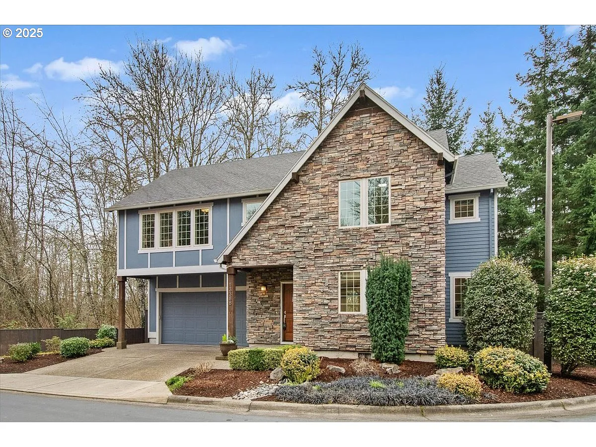 Tranquil Tigard retreat surrounded by nature. Located on a quiet cul-de-sac and surrounded by trees and lush landscape. A striking entrance into the home with vaulted ceilings and a wall of windows overlooking gorgeous greenspace. The natural beauty and impressive features in the spacious great room will make daily activities feel like vacation. The tumbled stone fireplace is cozy and grand at the same time, and central to this great room. Adjoining is the huge island kitchen with stainless appliances and fantastic counter space & storage, dining area with charming millwork & beautiful flooring, all against the incredible backdrop of windows with serene greenspace views. In the kitchen, the dishwasher, sink, faucet and refrigerator are all new in the last 5 years. The primary suite is 5-star luxury with vaulted ceilings, soothing color and fabulous attached bath. The upstairs is open and bright, with the hallway enjoying territorial views. Large upstairs laundry with plenty of storage. Yard is the perfect size, fully fenced, and there's a covered deck for year-round enjoyment and west exposure for peaceful sunsets. All the work is done here with some exterior lighting around the deck, and such easy care with artificial turf in the backyard. Located just minutes from King City Community Park, you’ll have access to winding walking trails, play areas and towering trees. Deer Creek Elementary is just blocks away. New furnace and A/C in 2023, and new water heater in 2022. Enjoy vibrant downtown Tigard's thoughtful & fun community events, and the thriving coffee, restaurant & businesses - plus public transit. Loaded with quality and luxury features at an incredible price! Open Sat & Sun 12-2