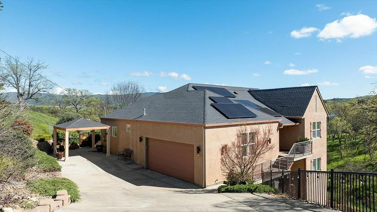 This exquisite home offers a thoughtfully designed environment where comfort and elegance converge, creating a distinctive retreat. On the main level, the kitchen serves as a central point for culinary endeavors, enhanced by a generous kitchen peninsula featuring concrete countertops, cherry shaker cabinetry, SS appliances and beautiful colored, polished concrete floors. Formal dining room is very versatile and currently being used for a workout area. Within the inviting living room, the gas log fireplace offers a comforting focal point, promising warmth and an ideal setting for quiet evenings with access to a half bath. A serene primary bedroom provides a private sanctuary with walk-in closet and outside access onto the large back deck captivating mountain views that will inspire you daily. The ensuite bathroom is designed for ultimate rejuvenation and includes a spacious walk in shower, alongside a jetted tub complemented by a convenient double vanity. The lower level offers a dedicated laundry room, spacious family room, den/office, two spare bedrooms and a full bathroom. The attached two car garage, pergola, EV charging and partially fenced .68 acre all add practical convenience to daily routines. This property offers a harmonious blend of refined interior spaces and appealing outdoor amenities, creating an ideal setting for an elevated lifestyle.