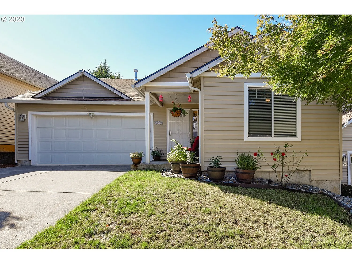 Excellent one level home with open floor plan with lots of natural light located in the Barlow Ridge community. Vaulted ceilings and solid surface flooring throughout. New roof in 2020, new furnace & AC in 2018 make this home turn key. All kitchen appliances and washer/dryer included. Enjoy the low maintenance fenced yard and raised garden beds. 50 amp plug for EV in garage!