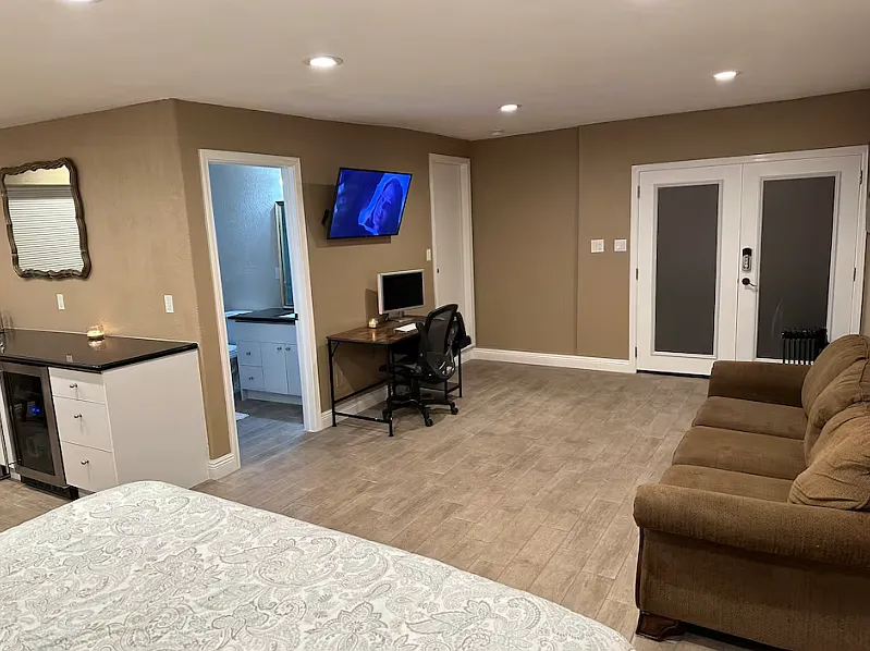 Welcome to our newly renovated apartment in historic Old Southwest Reno, ideal for traveling business or medical professionals. This private-entry unit features an outdoor BBQ, modern luxury shower, defined workspace. Enjoy close proximity to area hospitals, skiing at Lake Tahoe, the airport, and convention center. Book now for a comfortable and convenient stay! Due to past experience, we will not booked anyone without reviews, or uncompleted profile. Dogs allowed additional cleaning fee$100 The space 490 ft. studio apartment has a luxury, modern shower, heated floors in the bathroom and a well-defined work area. Guest access Space has a private entry and a private yard. Other things to note Well-behaved dogs are welcome for an additional fee. No cats or other animals due to allergies.