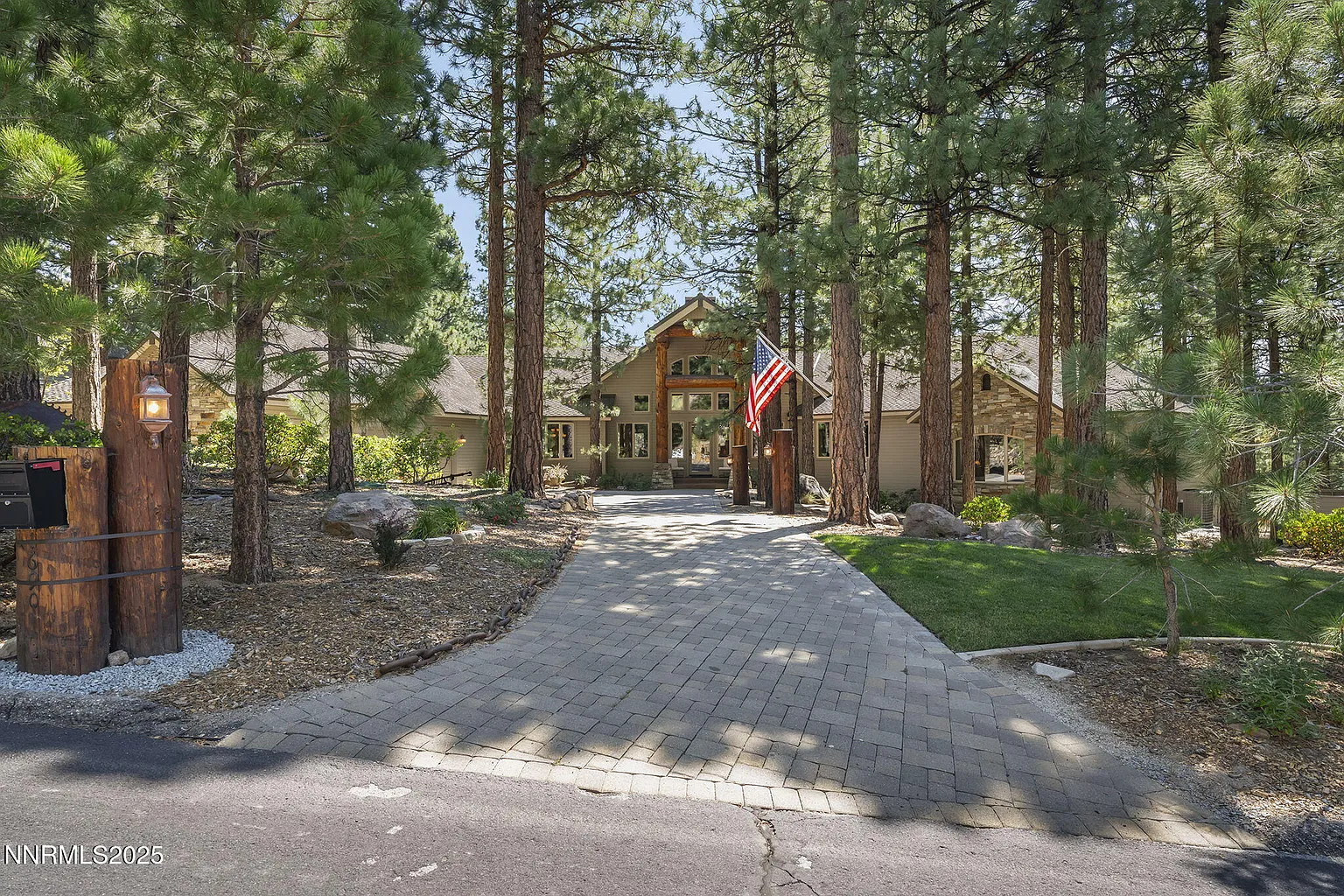 Stunning Galena Forest home on .86 acres. Beautiful curb appeal with long paver driveway, towering pines, Douglas Fir log and honey ledge stone accents, and redwood siding. The great room design has a wonderful ambience - like your own private lodge with 23 foot high ceiling, barrel vaulted with redwood, and log accents. Amazing floor to ceiling honey ledge stone fireplace with large hearth. Kitchen is fully remodeled with leathered granite, GE Monogram ovens and fridge, Wolf range, wine fridge, breakfast bar and dining nook overlooking the grounds. Gorgeous Brazilian Cherry flooring in main living areas, plus hickory and travertine. Primary suite with deck access, large walk in closet, luxurious bath with dual vanities. Enjoy two additional ensuite bedrooms and a large office with closet or 4th bedroom. The oversized laundry doubles as butlers pantry with tons of storage. Oversized 1552 square ft garage can easily fit 4 cars, also has walk in shop. Charming sunny yard with patio and firepit, stone walkways, gorgeous trees, and mountain views from the lower seating area. Large basement area great for storage. Other features include 2 furnaces and two A/C units, wood casement windows, and whole house water purification system. This is the first time on the market for this original owner who has been lovingly maintained for the property. Short drive to Reno-Tahoe Airport, Lake Tahoe, and all conveniences. Mt. Rose ski resort just up the road about 10 minute drive!