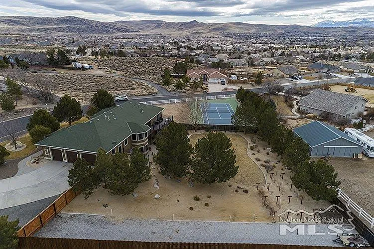 Looking for that unique property to call home? Sometimes a place like this comes along once in a lifetime, and this is it. Pictures will not tell the whole story here. And once you see this in person, you will realize you have found just what you are looking for, and everything has been tailored for perfection. Tucked away in a wonderful neighborhood in Spanish Springs, breathtaking views, 1304 sqft garage, RV parking, no HOA, professional grade tennis courts, 5th bedroom closet is present but not in use.