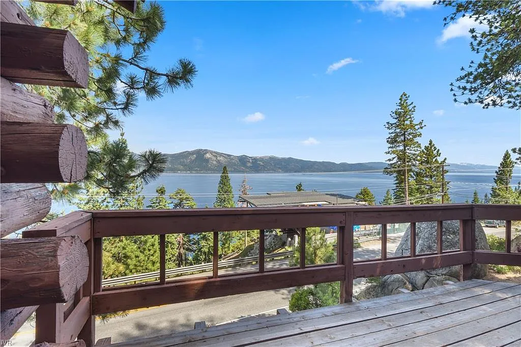 Enjoy panoramic lake views and the amazing moon rises over Crystal Bay from this true 1942 log cabin or watch the snow fall through the picture windows as you cozy up alongside the artistic stone fireplace. The 1,070 square feet of living space lives bigger than it appears in photos. There is a bedroom on the main floor, along with bathroom and laundry room. The open remodeled kitchen with granite counters, stainless appliances allows for movement of guests and accessibility to deck. Downstairs there are two bedrooms with lake views and one with the option to completely close off for separate apartment living. Vintage fir wood flooring completely refinished. Bring your current touch of style or retain "Old Tahoe"!