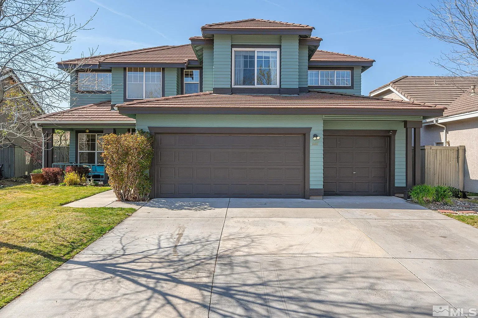 Welcome to this beautiful two-story home in the highly sought-after Double Diamond neighborhood of South Reno! Offering five spacious bedrooms and three full bathrooms, this home is designed for both comfort and convenience. Step inside to find brand new carpet and luxury wood flooring, enhancing the fresh and modern feel throughout. A main-level bedroom provides flexibility for guests or a home office. Both the exterior and interior has been recently painted. Open House Saturday from 10 - 2:00!, The luxurious primary suite is a true retreat, featuring a relaxing bathtub, an oversized walk-in closet, and a ceiling fan for year-round comfort. Enjoy the beautifully landscaped backyard oasis, surrounded by mature trees and lush greenery, offering privacy. The three-car garage is a standout with insulated doors, drywalled and painted walls, and wall cabinets that stay! Located just blocks from top-rated schools, parks, walking trails, shopping, and dining, this home has it all! Showings begin on Saturday during the Open House 10-2:00.