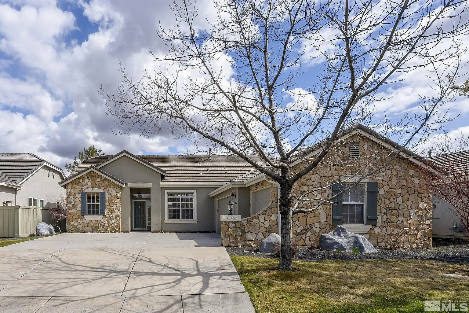 This 3-bedroom plus office, 2-bath single-story home is located in the sought-after Pioneer Village at Double Diamond community in south Reno. Nestled in a quiet cul-de-sac, it features a spacious 3-car garage with built-in storage. The bright and airy floor plan offers separate formal living and dining areas, all enhanced by brand-new laminate wood flooring and fresh interior and exterior stucco paint for a clean, modern feel. The beautiful kitchen, featuring granite countertops and well-maintained cabinetry, includes a breakfast bar, a nook, and a pantry. The primary suite is thoughtfully positioned away from the secondary bedrooms, offering privacy and tranquility. It features a separate backyard entrance, an en-suite bathroom with dual sinks, a garden tub, a separate shower stall, and a walk-in closet. Outside, enjoy a spacious backyard with a covered patio, full sprinklers, and drip irrigation — perfect for relaxing or entertaining. The oversized driveway provides ample parking, while the low-maintenance landscaping allows more time to enjoy everything this fantastic location has to offer. Additional highlights include a water heater replaced in December 2024, a new patio screen door installed in August 2024, and all kitchen appliances replaced within the last five years. This home is turnkey and ready for move-in!
