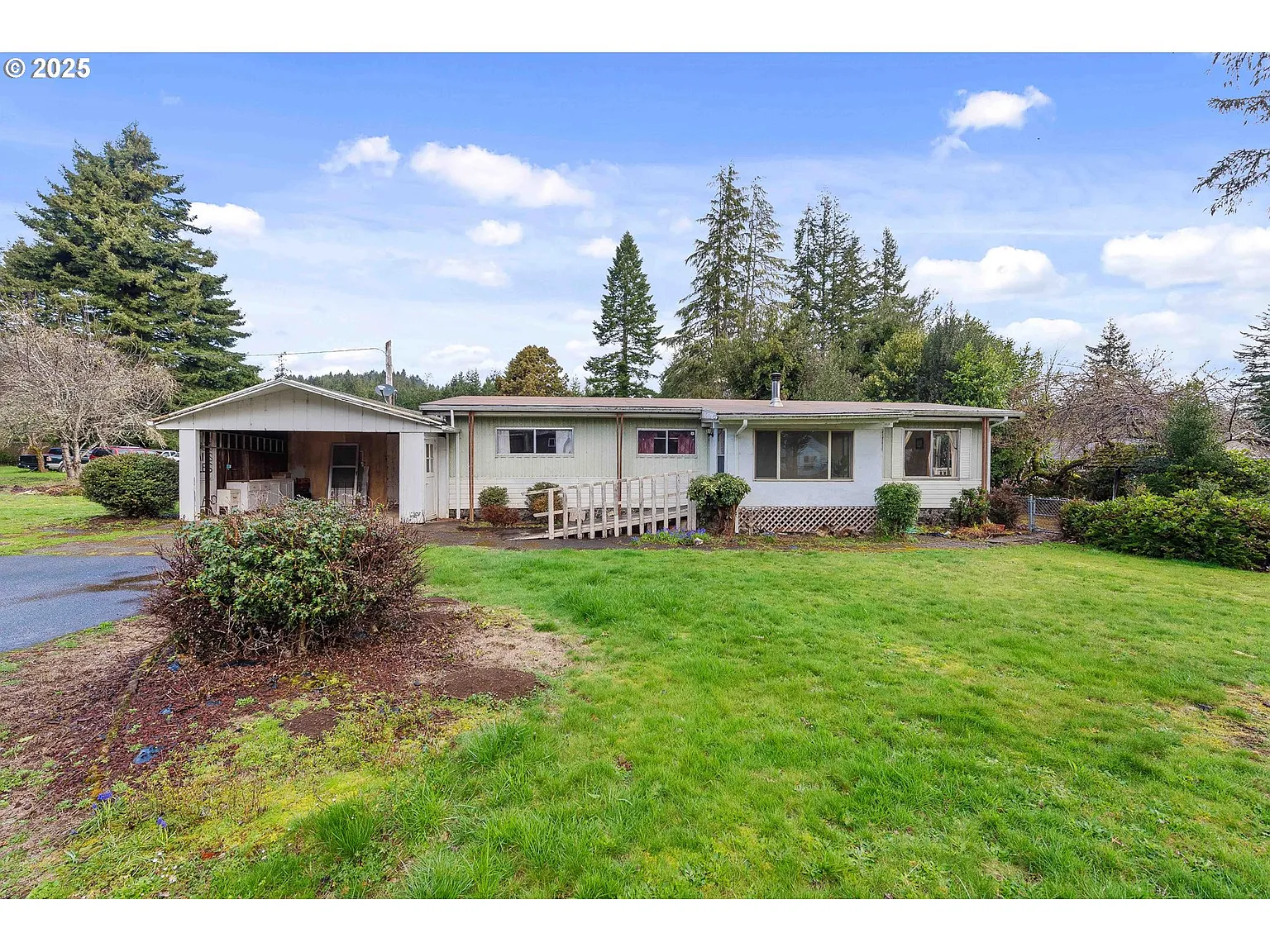 This property features two tax lots and a massive 48x40 ft shop with a concrete floor, automatic garage door, metal siding and roof, and a separate electric panel, all located on the front lot. The back parcel includes a 1,152 sq. ft. doublewide mobile home with three bedrooms and two bathrooms. It comes equipped with a pellet stove, range, refrigerator, washer and dryer, an attached open garage, a separate storage room in the back, and an enclosed covered deck in the front. The membrane roof was installed approximately 12 years ago. The spacious, and mostly fenced 0.50-acre with trees, shrubs, a garden area, and plenty of parking for an RV or boat. Conveniently located just a few miles from the Oregon Coast beaches and boat ramp. This property needs TLC & will not qualify for a standard loan & will be sold "AS IS" but it is a fantastic opportunity to get equity in an affordable home.