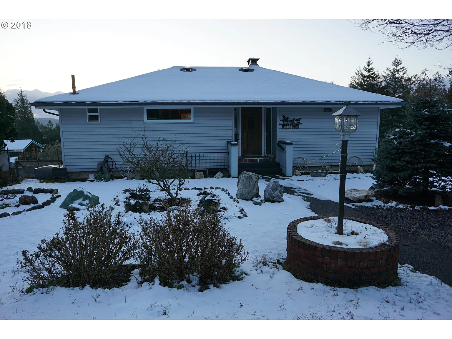 Solid home on edge of town in Coquille. 3 bedrooms/ 2 bath with valley views from living room and dining rooms! Daylight basement with two bedrooms and bath. Main level master bedroom and double fireplace inserts, one in living room and one in dining room. Roomy kitchen with newer appliances. ATT septic system in 2015. 18' x 18' metal detached storage shed for all your toys.