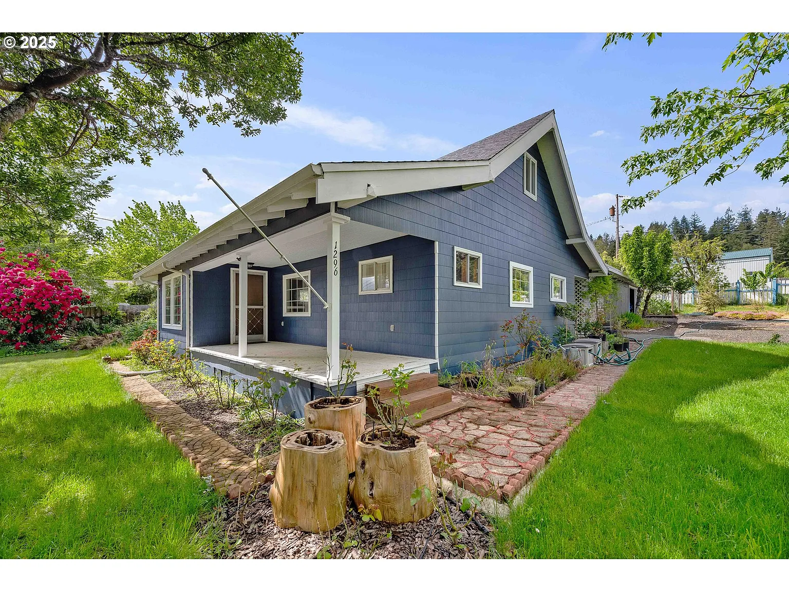 Assumable FHA Loan at 5.125% with an approximate balance of $311,800. .49 Acre Lot with a Drip Irrigated Perennial Food Forest. Conveniently located on the outskirts of Coquille, only 17 miles from Coos Bay and 18 miles from Bandon. This Charming 1926 Craftsman Home will captivate the gardener's heart with over 30 Rose varieties, an Orchard, a Hummingbird Sanctuary, a Large Vegetable Garden, and 2 Large Berry Gardens. This edible landscape features several unique and delicious plants. With all the gardening tools you will need included in the sale! The exterior also has plenty of parking for all your guests and an open garage with an expansive enclosed storage space. Updates include interior and exterior paint, plus a new membrane roof with skylights over the garages installed in 2023. On the first floor you will find the primary bedroom, a guest bedroom, a bathroom, and a large kitchen with vaulted ceilings. Upstairs opens up to a 340 sqft finished storage space or bedroom. The properties C-2 Commercial Zoning may allow other potential uses. This home is a must see.