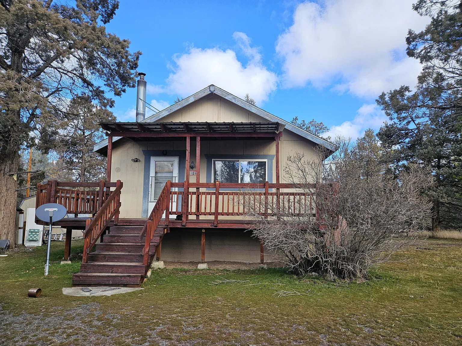 This unique two-bedroom, two-bathroom home offers a private retreat on two acres of land surrounded by tall pines. Located near the end of a quiet road, the property features an updated kitchen with new cabinets and a dishwasher. Both bathrooms are spacious and updated. The exterior includes two storage buildings, two carports, and several older structures, making it suitable for either a year-round residence or a vacation home.