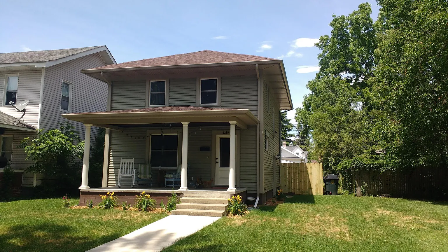 A Great floor plan with 3 Bedrooms , 1 .5 Bathrooms. First floor half bath. 2 ND Floor Laundry Room a huge plus, New Roof , Windows , Vinyl Siding , Carpet upstairs, Vinyl plank floor in downstairs, Kitchen , Baths , Mechanical Systems. Check out the huge covered front porch , Fenced in backyard with concrete back patio. Close to Downtown and Eddy Street Commons.