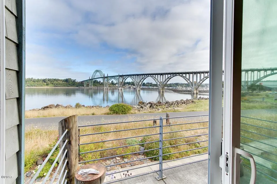 Beautiful townhome with gorgeous view of the bridge and Yaquina Bay!! 2 bed, 2 bath, 2 car attached garage. Granite counters throughout. Heated tile floors upstairs in the kitchen, dining, family room. Great vacation rental. Fridge and W/D included. Comes fully furnished excluding the artwork.